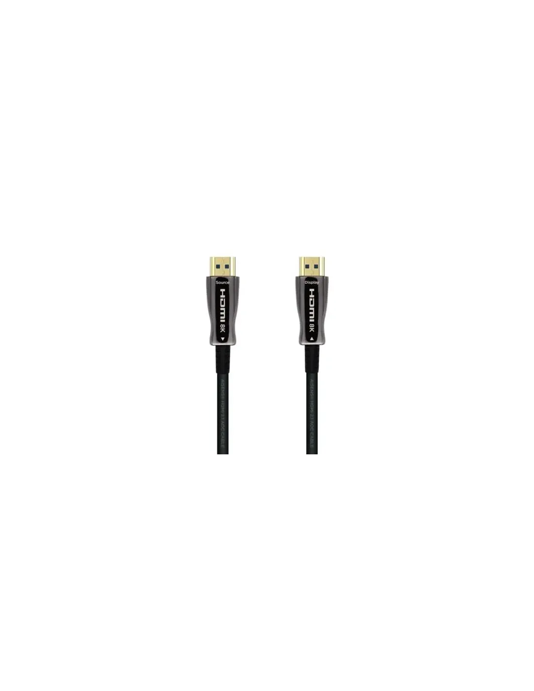 Cable HDMI V2.1 ultra alta velocidad con Ethernet con Ethernet con conector tipo A macho en ambos extremos.Fabricado con una mezcla de alambre de fibra óptica y cobre, este cable activo es menos sensible a interferencias EMI, lo cual ofrece una señal clara y fiable de audio/vídeo, incluso en entornos como centros de datos, hospitales, etc.Conectores de alta calidad blindados en oro de 24K. Múltiple apantallamiento para la máxima reducción de posibles interferencias. Fabricado con conductores de cobre (cobre OFC-Oxygen Free Copper- 99,99%) de alta calidad que garantiza la máxima calidad de transmisión.Retrocompatible con las especificaciones HDMI anteriores y funciona con todos sus dispositivos HDMI existentes.