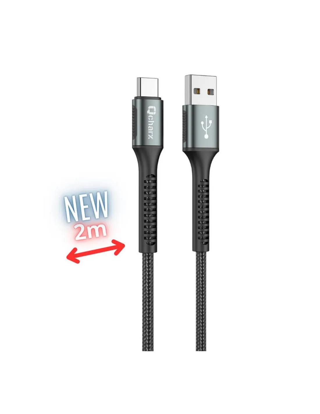 Qcharx Prague Cable USB a Tipo C 3A 20W (2 m) Aleacion de aluminio Negro Cordon de tela suave