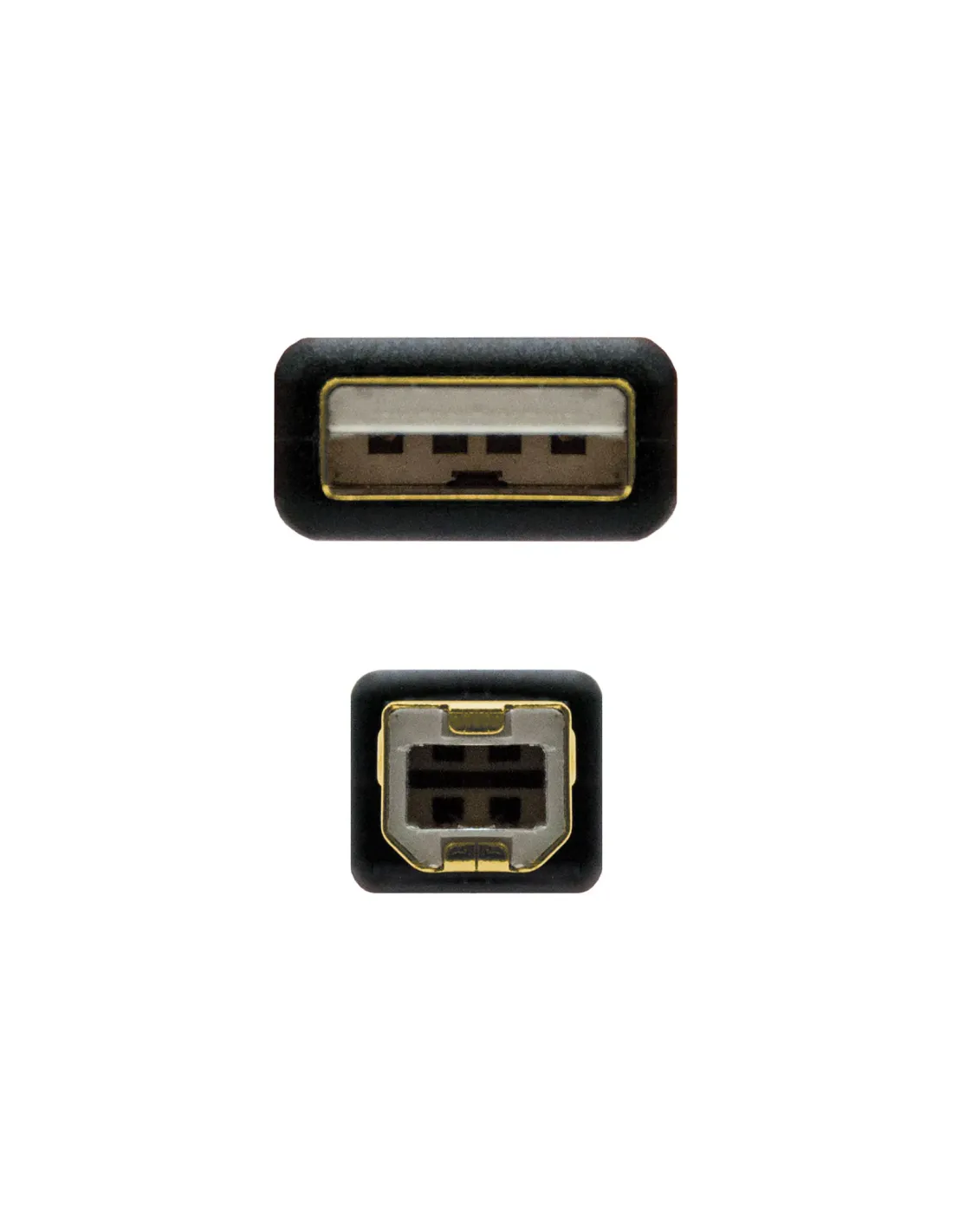 - Cable USB 2.0 especial para impresoras con conector tipo A macho en un extremo y B macho en el otro- Conectores de alta calidad blindados en oro de 24K, Doble apantallado y estructura (28AWG+24AWG) para obtener un excelente resultado en la transferencia de datos. Incluye además ferrita en ambos extremos para evitar interferencias de alta frecuencia.- Ideal para las conexiones más exigentes