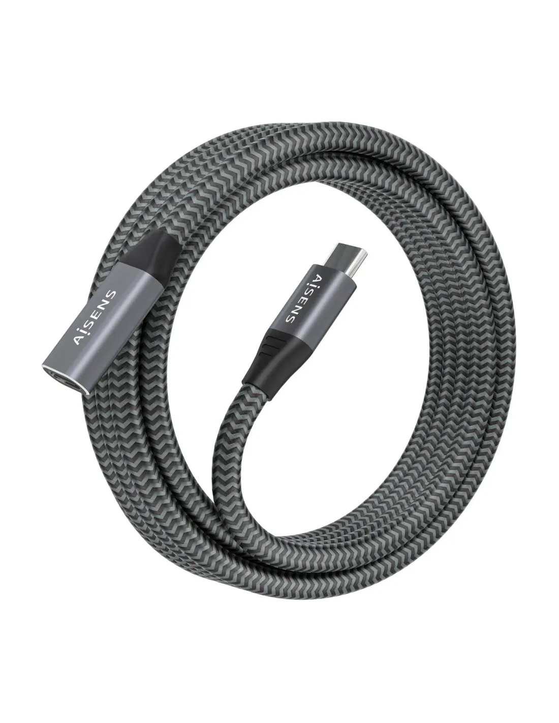 Cable Alargador USB 3.2 Aisens A107-0636/ USB Tipo-C Macho - USB Tipo-C Hembra/ Hasta 100W/ 20Gbps/ 2m/ Gris
