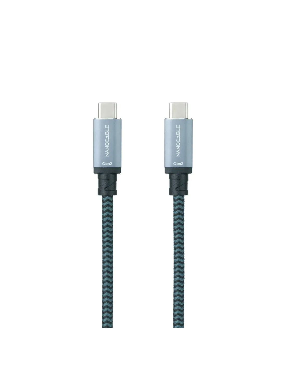 Nanocable cable Ideal para conectar su nuevo dispositivo móvil/tablet USB-C a un ordenador con USB-C. El cable ofrece hasta 5 amperios 100W de carga y lleva E-mark chip, con lo cual se puede usar para cargar su dispositivo móvil, tablet, portátil de hasta 100W etc. Velocidad de transferencia de datos de hasta 10Gbps. Longitud: 2 metros. Color: Gris/Negro. Normativas: RoHS. Test de funcionamiento: 100% testado.Compatible con video hasta 4k a 60Hz. Compatible con puertos con Thunderbolt 3. El conector USB tipo C es más fácil de usar que los conectores USB de generación anterior. Su diseño reversible le permite conectar dispositivos con cualquiera de sus caras hacia arriba.Inserte el cable de forma correcta siempre, sin equivocarse ni causar daños en el puerto. Este cable USB-C tiene certificación USB-IF, lo cual significa que cumple con todas las especificaciones sobre USB 3.1.