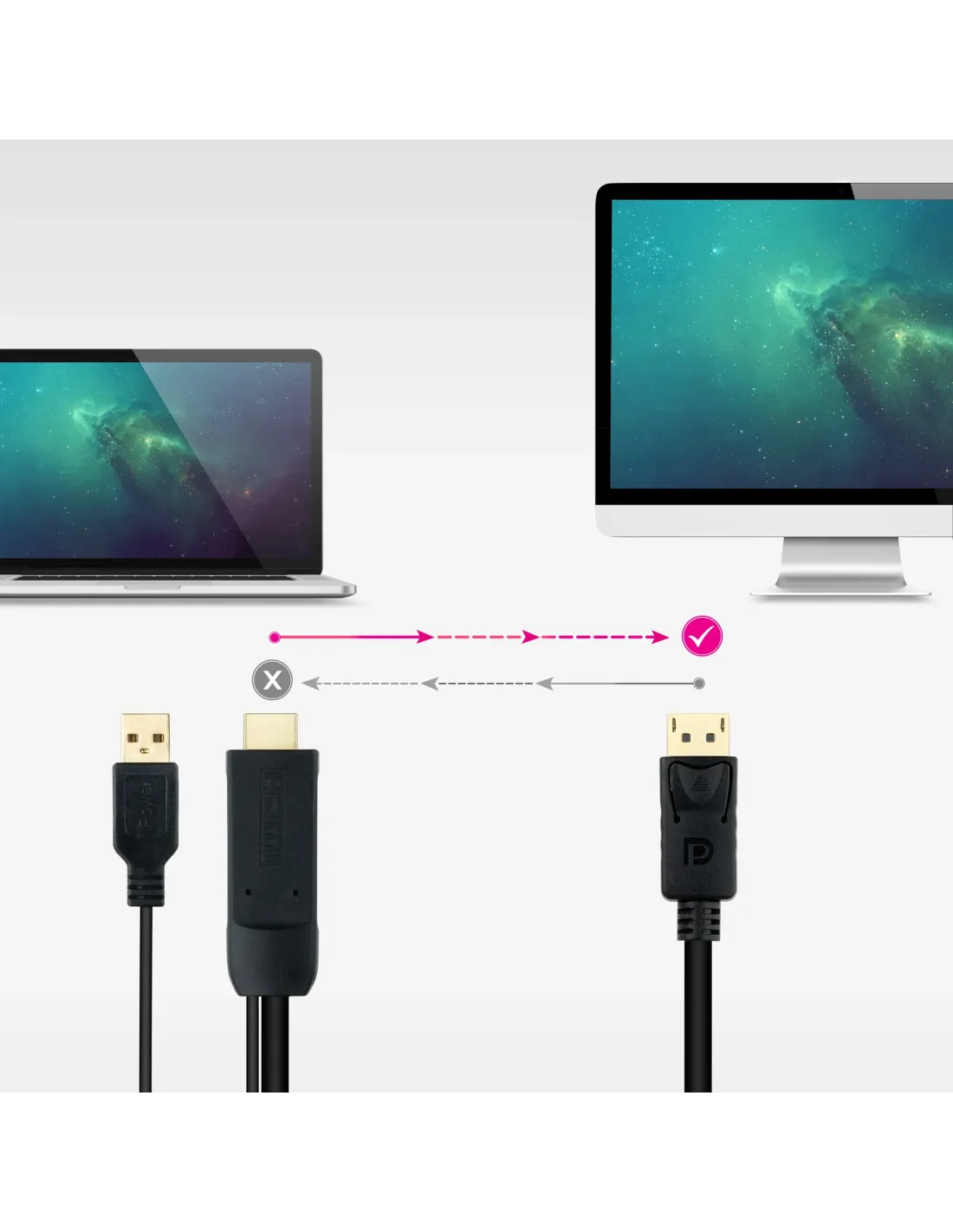 Transforma la señal de tu HDMI a DisplayPort. Es compatible con HDMI 2.0, DP V1.2 y todas sus versiones anteriores. ¡Además dispone de alimentador a través de su cable USB-A por si lo necesitas!¡Rompe los límites! Conecta un dispositivo HDMI a un monitor con entrada DisplayPort.¿Necesitas más energía? Conecta el USB-A para alimentar tu conexión para que vaya perfecta.Disfruta de la alta definición como nunca. ¡Nuestro conversor soporta hasta 4Kx2K a 60Hz!