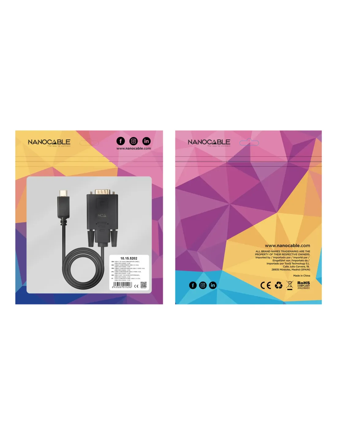 NANOCABLE CABLE CONVERSOR USB-C A VGA, USB-C/M-VGA/M, 1.8 M