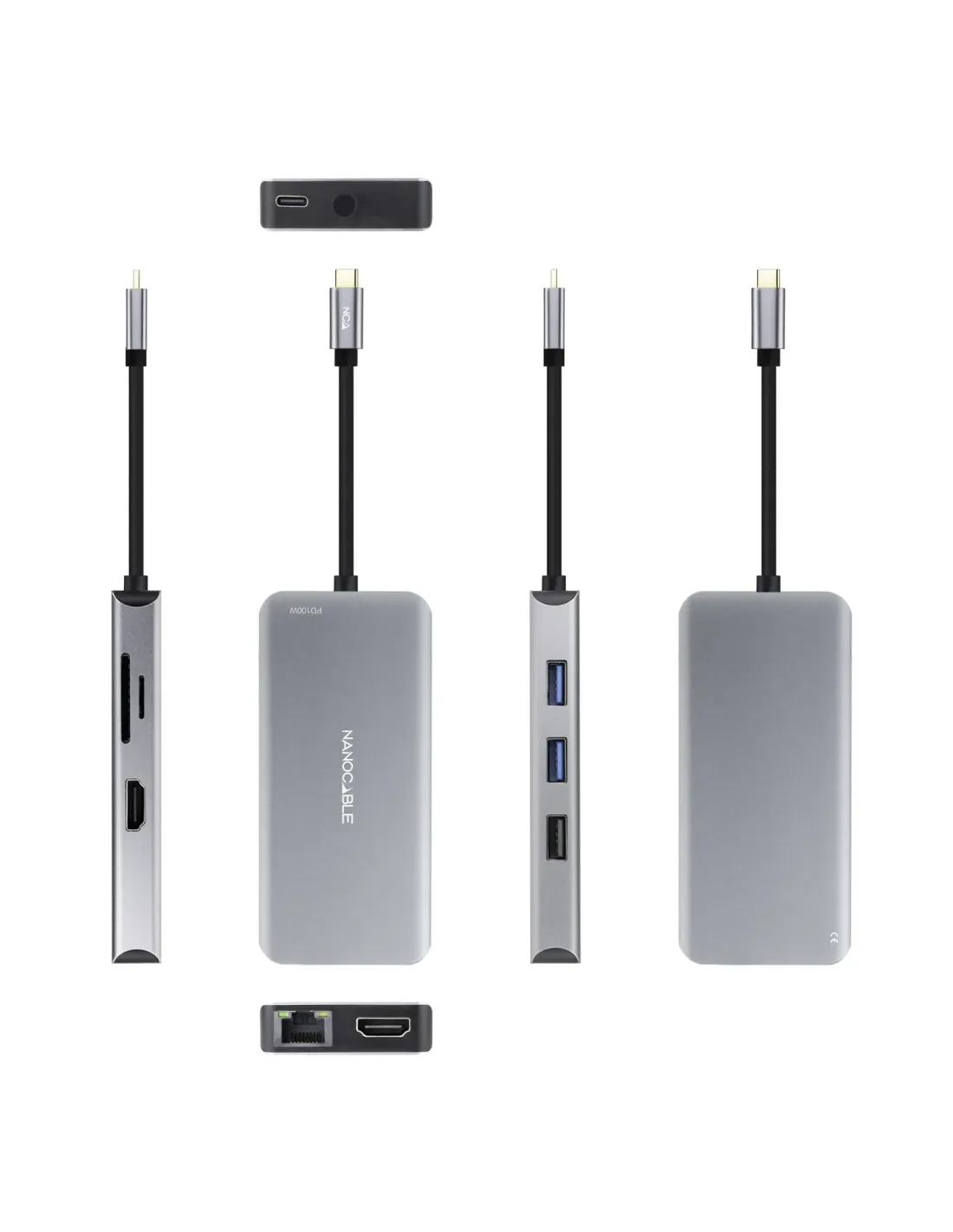 NANOCABLE HUB USB-C 3XUSB-A+2XHDMI+RJ45+TF+SD+USB-C PD 100W.