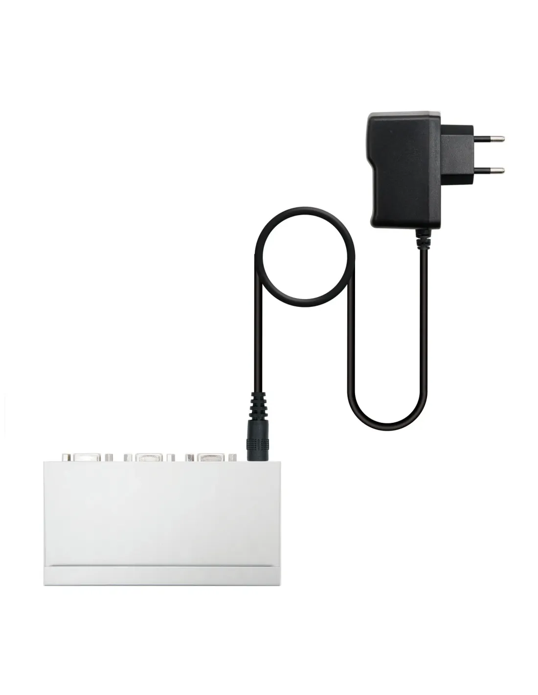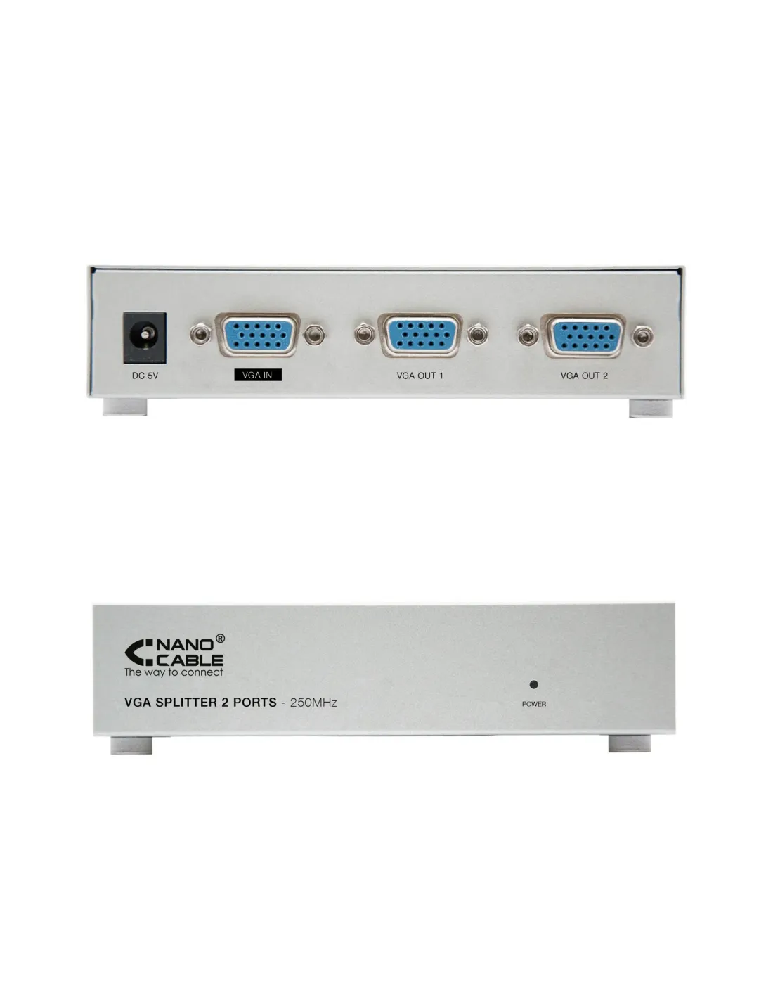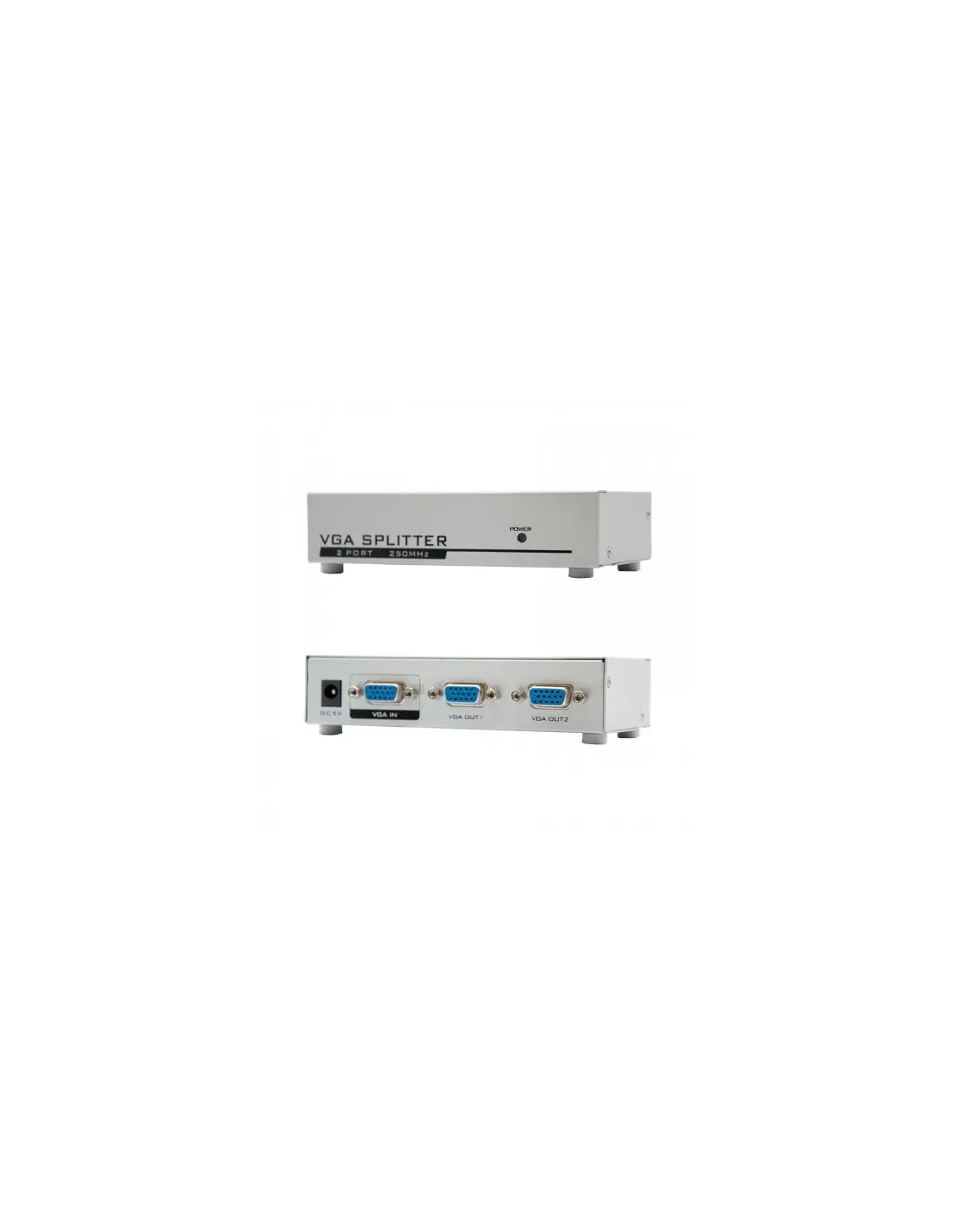 Duplicador de VGA para dos monitores\n\nEspecificación:\n- Ancho de banca de 250MHz\n- Aumenta la señal de vídeo para distancias de hasta 30m\n- Soporta DDC, DDC2, DDC2B (solo puerto 1)\n- Permite la conexión en cadena margarita\n- Puerto de entrada de señal: hembra\n- Puerto de salida de señal: hembra\n- Carcasa metálica\n- Factor de forma pequeño\n- Adaptador de corriente incluido\n- Cables SVGA no incluidos\n- Ideal para las emisiones públicas, monitorización remota, aulas de formación, etc.\n- Contenido del paquete:\n- 1 x Vga duplicador (splitter) para 2 monitores con alim.\n\nInformación del embalaje:\nCaja retail\nPeso aprox.(kg): 0,9\nMedidas aprox.(mm) alto/ancho/largo: 230/100/60