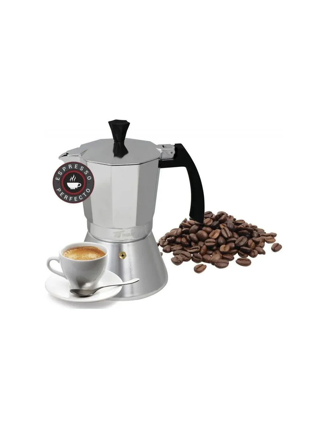 Realizada en aluminio resistente y duradero.Método clásico italiano para la elaboración de café.Prepara un gran café.Junta de silicona.Aptas para todo tipo de cocinas: Inducción, gas, eléctrica, halógena y vitroCapacidad: 9 tazas