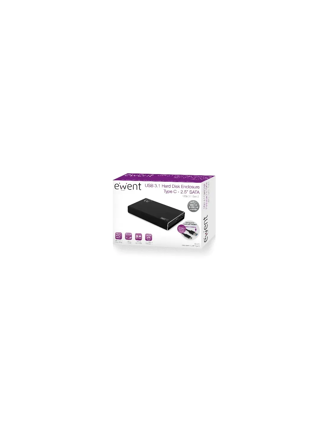 Ewent EW7070. Tipo de producto: Carcasa de disco duro/SSD. Número de unidades de almacenamiento compatibles: 1, Tamaño de la unidad de almacenamiento: 2.5", Interfaces de disco de almacenamiento soportados: SATA. Velocidad de transferencia de datos: 10 Gbit/s. Color del producto: Negro. Conector USB: USB Tipo C