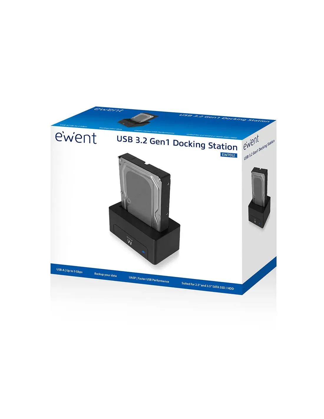 La estación de acoplamiento Ewent EW7012 le ofrece una forma rápida y sencilla de conectar una unidad de disco duro SATA de 2,5 o 3,5 pulgadas al puerto USB de su PC. Ello le permitirá intercambiar fácilmente grandes cantidades de datos o hacer una copia de seguridad.