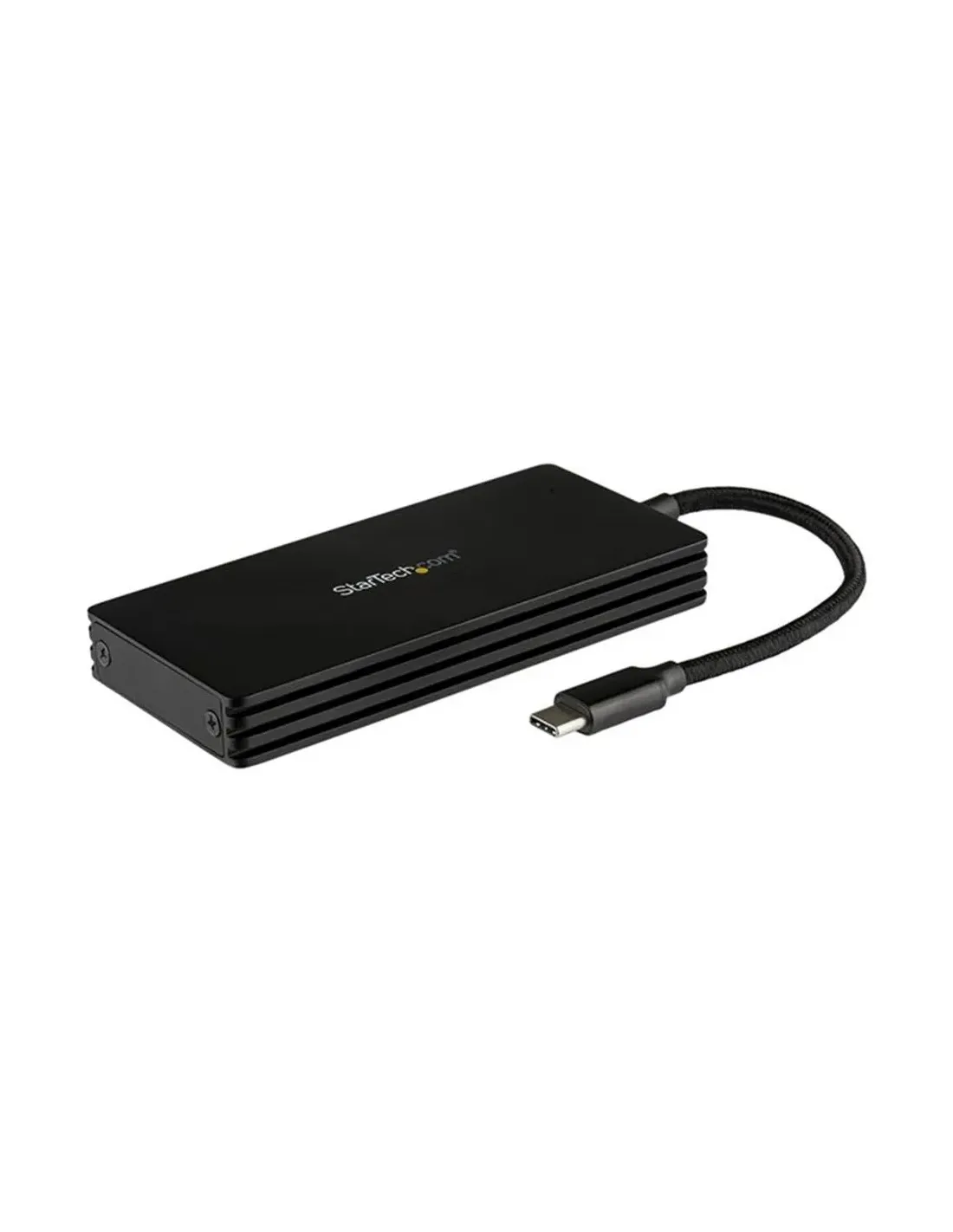 Características de la StarTech.com Caja USB 3.1 (10Gbps) USB-C para SSD M.2 SATALa caja externa StarTech.com para SSD M.2 SATA es una solución compacta y eficiente para convertir tu unidad interna en un almacenamiento portátil de alta velocidad. Diseñada para usuarios que buscan rendimiento, portabilidad y facilidad de uso, permite aprovechar al máximo la velocidad de los SSD mediante conexión USB-C 3.1 Gen 2.Alto rendimiento con USB 3.1 Gen 2Gracias a su interfaz USB 3.1 Gen 2, esta caja ofrece transferencias rápidas y estables, ideal para mover archivos pesados, copias de seguridad o trabajar con datos directamente desde el disco externo. Además, incorpora compatibilidad con UASP, mejorando el rendimiento frente a conexiones tradicionales.Velocidad de transferencia de hasta 6 Gbit/sInterfaz USB-C de 24 pinesCompatible con protocolo UASPCompatibilidad con SSD M.2 SATADiseñada para adaptarse a diferentes formatos, esta caja es compatible con unidades M.2 SATA NGFF (B + M key), permitiendo una instalación sencilla y versátil para distintos tamaños de SSD.Soporta formatos 2242, 2260 y 2280Compatible con SSD M.2 SATAAdmite 1 unidad de almacenamientoDiseño compacto y resistente en aluminioSu carcasa de aluminio negro no solo aporta un acabado elegante, sino que también ayuda a disipar el calor, mejorando la durabilidad del SSD. Su tamaño reducido la convierte en una opción ideal para llevarla a cualquier parte.Material: aluminio resistenteDimensiones: 11 x 5 x 1.4 cmPeso ligero de 95 gInstalación sencilla y accesorios incluidosIncluye todo lo necesario para un montaje rápido, facilitando la instalación del SSD sin complicaciones. Además, se alimenta directamente por USB, eliminando la necesidad de fuentes externas.Kit de montaje completo incluidoDestornillador y tornillos incluidosCable USB-C integrado (14,5 cm)Fiabilidad y funcionamiento estableEquipada con el controlador JMicron JMS580, esta caja garantiza un funcionamiento eficiente y estable. Incorpora también indicador LED de estado y un diseño pensado para un uso prolongado.MTBF de 50.000 horasIndicador LED de actividadRango de funcionamiento: 5 °C a 35 °COtras especificacionesAlimentación mediante bus USBHumedad de funcionamiento: 20% - 80%Procesador integrado: JMicron JMS580