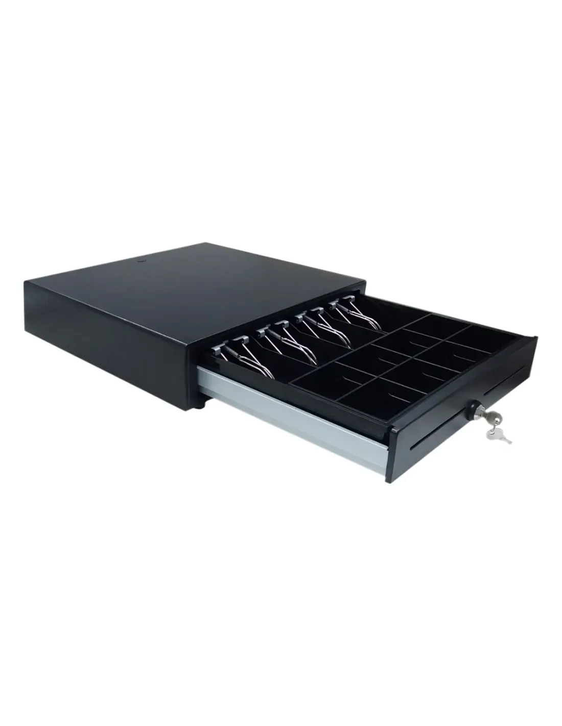 Características del TPV Cajón Portamonedas UNYKAch 56001El **cajón portamonedas UNYKAch 56001** está diseñado para ofrecer una solución robusta, segura y funcional en entornos de punto de venta. Gracias a su estructura metálica, su sistema de apertura dual (manual y automática) y su compatibilidad Plug & Play con impresoras térmicas, es ideal para el sector retail, hostelería o pequeños comercios que necesitan agilidad y orden en la gestión del efectivo.Diseño compacto y funcionalEste modelo combina una construcción resistente en acero con un formato compacto, adaptándose a mostradores con espacio limitado sin sacrificar capacidad. Su cerradura con tres posiciones permite elegir entre cerrado, abierto o espera de apertura automática mediante impresora.Color: Negro, estética sobria y profesionalDimensiones: 415 x 410 x 100 mmIncluye 2 llaves para apertura manual seguraOrganización eficiente del efectivoEl interior del cajón está diseñado para facilitar la clasificación de efectivo con acceso rápido y seguro. Sus compartimentos bien distribuidos lo convierten en una opción práctica para todo tipo de negocios.4 compartimentos para billetes con sujección8 departamentos para monedasBloqueo del teclado disponible para mayor controlConectividad y compatibilidadEl cajón UNYKAch 56001 se conecta fácilmente mediante puerto RJ-11 a impresoras térmicas compatibles. No requiere configuración adicional: simplemente conectar y empezar a usar. Funciona con los sistemas operativos más comunes.Conexión: RJ-11 (1 puerto)Compatible con impresoras UNYKAch POS 56005 y 56006Compatible con Windows (10, 8, 7, Vista, XP, 2000) y LinuxOtras especificacionesTipo de producto: Cajón de efectivo manualMaterial de la carcasa: AceroPeso: 7 kgDimensiones del paquete: 455 x 775 x 165 mmPeso del paquete: 8 kg