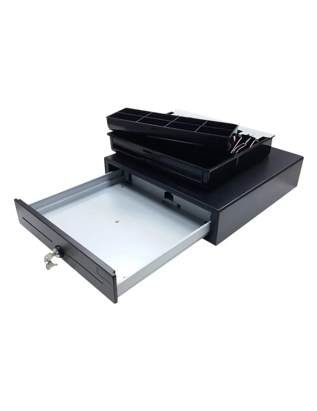 UNYKAch Cajón Portamonedas, Cajón de efectivo manual, Acero, Negro, 415 mm, 410 mm, 100 mm