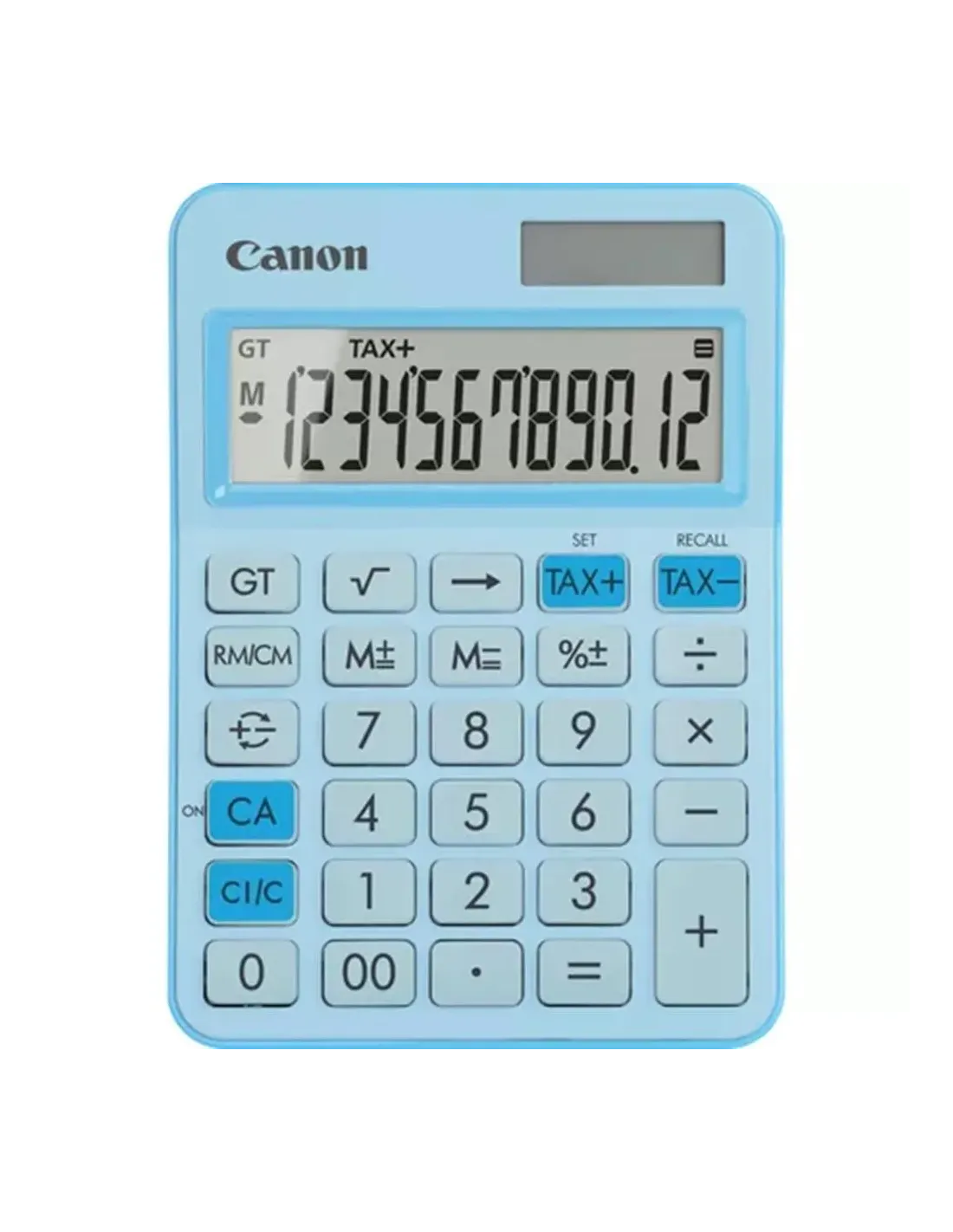 Características de la Canon LS-125KB - Calculadora de Sobremesa (Azul)La Canon LS-125KB es una calculadora de sobremesa pensada para quienes necesitan una herramienta práctica, clara y funcional para el día a día. Su combinación de pantalla LCD de 12 dígitos, funciones de cálculo básico, científico y financiero, y alimentación dual mediante panel solar y batería la convierte en una opción muy adecuada para el hogar, la oficina o el entorno académico. Además, su acabado en color azul aporta un diseño moderno y atractivo, mientras que su fabricación con materiales reciclados refuerza su enfoque sostenible.Pantalla LCD de 12 dígitos para una visualización claraUno de los puntos fuertes de este modelo es su pantalla LCD de 12 dígitos, diseñada para mostrar resultados y operaciones con buena claridad y comodidad. Esta configuración resulta especialmente útil para trabajar con cifras amplias, importes, presupuestos o cálculos detallados en tareas diarias de oficina y estudio.Pantalla LCD de 12 dígitosVisualización clara y precisa de los cálculosFormato adecuado para operaciones detalladasFunciones básicas para el trabajo cotidianoLa Canon LS-125KB incorpora las funciones esenciales para resolver con rapidez las operaciones más habituales. Su configuración está orientada a facilitar el uso diario, ofreciendo una experiencia sencilla y eficaz tanto para usuarios domésticos como profesionales.Funciones básicas: suma, resta, multiplicación y divisiónFunción Gran TotalCálculo de constantesCambio de signo y retrocesoFunciones científicas y financieras para una mayor versatilidadAdemás de las operaciones habituales, este modelo amplía sus posibilidades con funciones muy prácticas para un uso algo más avanzado. Incluye raíz cuadrada y porcentaje, además de cálculo de impuestos, una característica especialmente útil para tareas relacionadas con contabilidad, presupuestos y gestión de importes.Funciones científicas: raíz cuadrada y porcentajeFunciones financieras: cálculo de impuestosAdecuada para tareas de oficina, estudio y administraciónMemoria integrada para agilizar operacionesLa presencia de 3 botones de memoria permite almacenar y recuperar resultados con facilidad, algo especialmente práctico cuando se trabaja con operaciones consecutivas o se necesita conservar una cifra para utilizarla en cálculos posteriores.3 botones de memoriaAlmacenamiento rápido de resultadosRecuperación cómoda de cifras guardadasPantalla en ángulo para una experiencia más cómodaEste modelo incorpora una pantalla en ángulo, una característica pensada para facilitar la visualización y reducir reflejos o deslumbramientos durante el uso. Esto ayuda a mantener una postura más cómoda y a trabajar con más soltura en el escritorio.Pantalla en ánguloMejora la visibilidad de los resultadosReduce el deslumbramiento en el uso diarioAlimentación dual para un funcionamiento continuoLa Canon LS-125KB funciona mediante panel solar y batería, una combinación que ayuda a mantener la calculadora operativa en distintas condiciones de luz. Esta configuración aporta más comodidad en el uso diario y se complementa con la función de desconexión automática, que ayuda a ahorrar energía cuando no se utiliza.Fuente de alimentación: panel solar y bateríaFuncionamiento fiable en distintos entornosDesconexión automática para ahorro de energíaDiseño ecológico con acabado en azulOtro de los aspectos destacados de esta calculadora es su planteamiento sostenible. La Canon LS-125KB ha sido fabricada con materiales reciclados, lo que la convierte en una opción más respetuosa con el medio ambiente. Su acabado en color azul aporta además una imagen moderna y atractiva, ideal para quienes buscan un accesorio funcional con un toque visual diferente.Color: azulFabricación con materiales recicladosDiseño moderno y atractivoEstabilidad y comodidad para sobremesaLa Canon LS-125KB está pensada para ofrecer una experiencia cómoda sobre la mesa de trabajo. Sus pies de goma ayudan a mejorar la estabilidad durante el uso, algo especialmente útil en tareas repetitivas o de cálculo frecuente.Pies de goma para mayor estabilidadDiseño orientado a sobremesaAdecuada para hogar, oficina y entorno académicoOtras especificacionesLa Canon LS-125KB mantiene una configuración equilibrada para quienes buscan una calculadora fiable, sencilla de usar y con funciones útiles tanto para operaciones básicas como para cálculos algo más completos. Su combinación de memoria, funciones científicas, cálculo de impuestos y diseño ecológico la convierten en una solución muy completa para el uso cotidiano.Nombre del producto: Canon LS-125KBTipo de producto: calculadora de sobremesaPantalla LCD de 12 dígitosFunciones básicas, científicas y financieras3 botones de memoriaPantalla en ánguloDesconexión automáticaFabricación con materiales reciclados