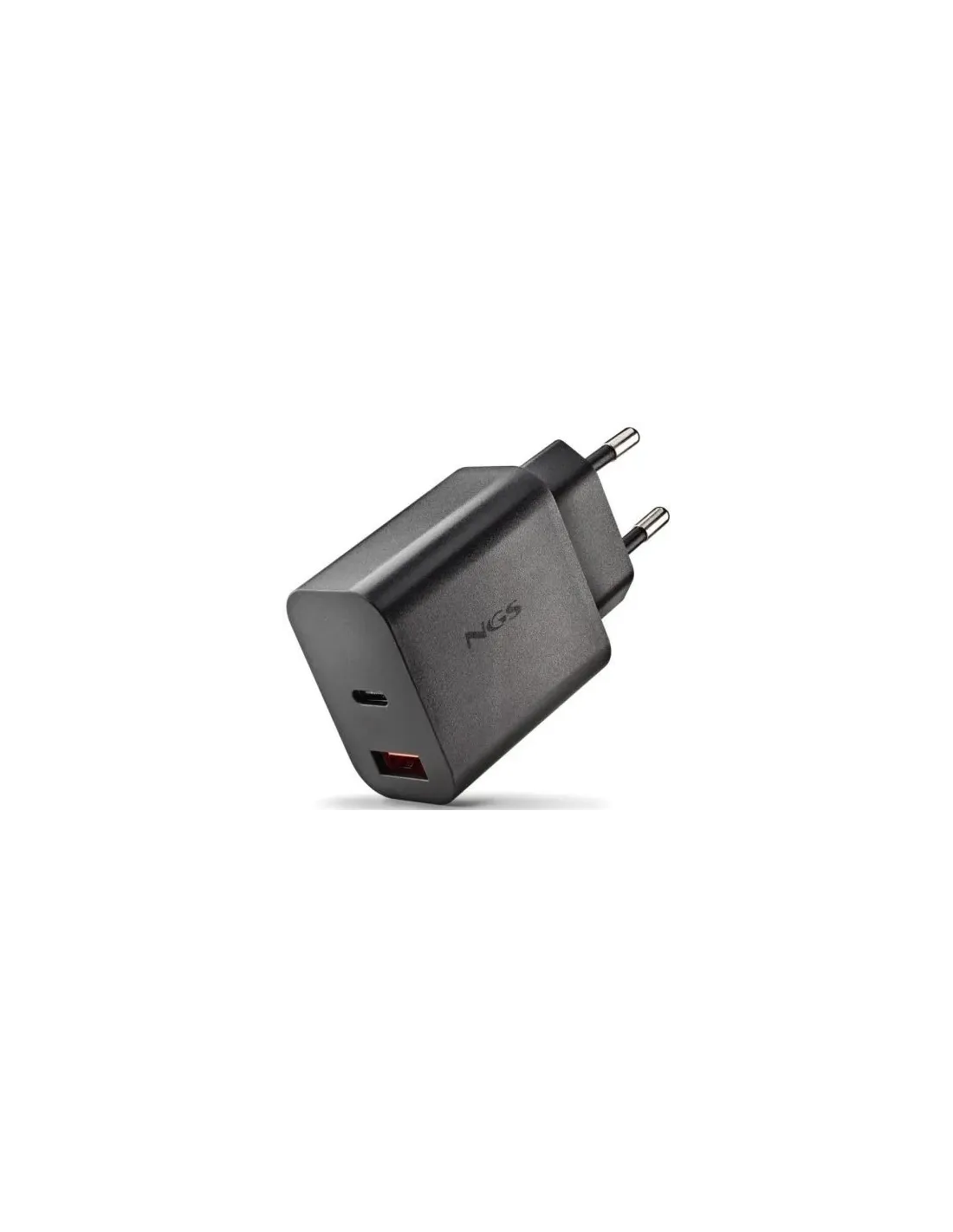 Marca NGS Modelo ERA20W Características - Cargador GaN de pared con una salida USB-C (PD & PPS) y una salida USB-A QC 3.0 - Entrada: 100-240V~50/60Hz 0.5A-Máx - Salida: USB-C: PD 5V/3A, 9V/2.22A, 12V/1.67A USB-A: QC3.0: 5V/3A, 9V/2A, 12V/1.5A USB-C+USB-A: 5V/3A - Eficiencia activa promedio: 83.8% - Eficiencia a baja carga (10%): 73.45% - Consumo sin carga: <0.3W Fecha de revisión 31-10-2025 por RTY