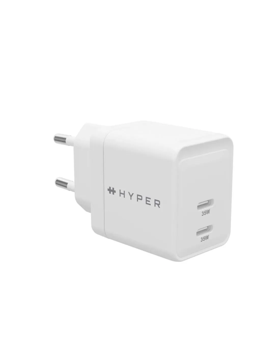 El **HYPER 35W USB-C GaN Charger** es un cargador ultracompacto ideal para quienes necesitan una solución potente y eficiente para sus dispositivos móviles. Diseñado con tecnología **GaN (nitruro de galio)**, ofrece una carga rápida en un formato mínimo, siendo perfecto para llevarlo contigo a cualquier parte. Compatible con smartphones, auriculares y otros dispositivos USB-C, permite cargar **hasta dos equipos simultáneamente**.