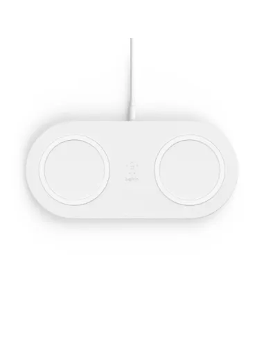 La **Belkin BOOST?CHARGE WIZ002VFWH** es una **base de carga inalámbrica doble** pensada para hogares y espacios de trabajo con varios dispositivos. Permite **cargar dos terminales a la vez** (smartphones o auriculares Qi) con **hasta 10 W por zona**, manteniendo un diseño **compacto y estable** en color **blanco** y una **compatibilidad universal** con el estándar **Qi**.