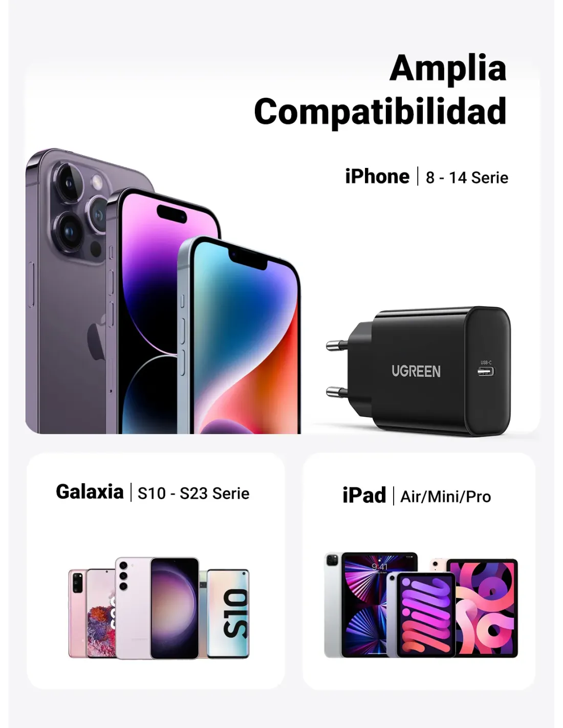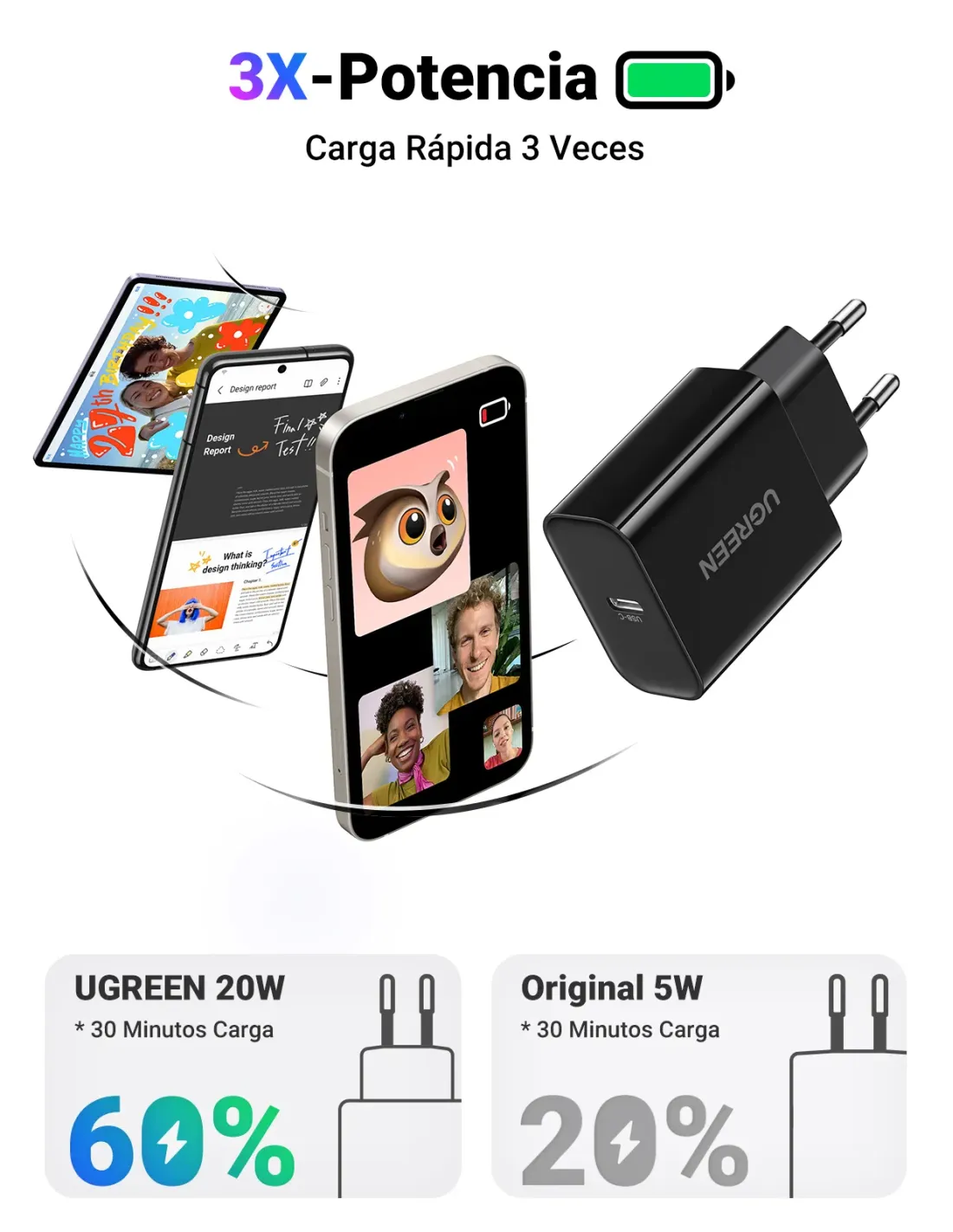 Ugreen 10191 cargador de dispositivo móvil Universal Negro Corriente alterna Carga rápida Interior