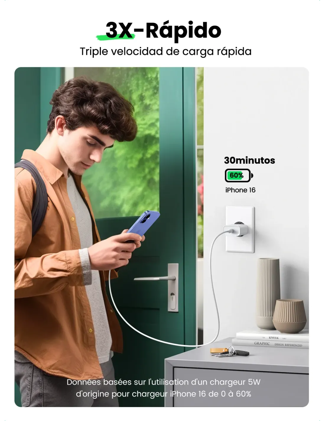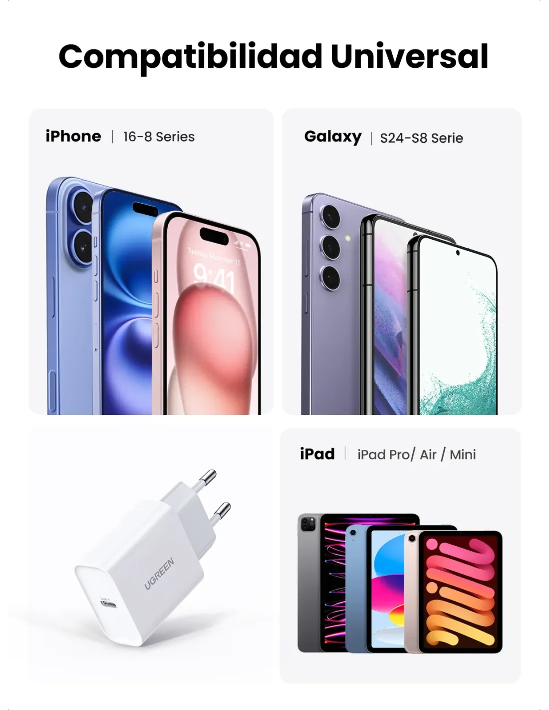 Ugreen 60450 cargador de dispositivo móvil Universal Blanco Corriente alterna Carga rápida Interior