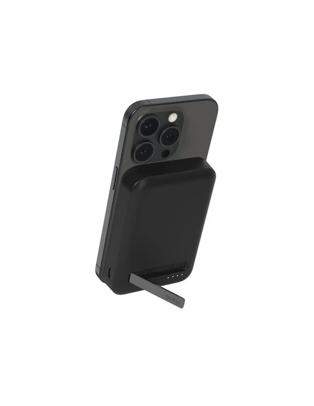 Características del Powerbank Belkin BoostCharge Pro BPD007BTBK Magnética 8000 mAh con Qi2 15W NegraEl Belkin BoostCharge Pro BPD007BTBK es un powerbank magnético de 8000 mAh con tecnología inalámbrica Qi2 de 15W, diseñado para ofrecer una carga rápida, segura y sin cables a tus dispositivos móviles. Su diseño compacto, con indicadores LED y compatibilidad universal, lo convierten en el aliado perfecto para quienes buscan autonomía y practicidad en movimiento.Carga inalámbrica magnética Qi2 de 15WGracias a la tecnología Qi2, este powerbank permite una carga inalámbrica más estable y rápida, con una potencia de hasta 15W. Su sistema magnético garantiza una alineación precisa del dispositivo, evitando interrupciones durante la carga.Potencia inalámbrica de 15WAlineación magnética automáticaCompatible con smartphones con tecnología QiBatería de 8000 mAh y carga simultáneaCon sus 8000 mAh de capacidad, es capaz de recargar un smartphone varias veces. Además, permite cargar hasta 2 dispositivos al mismo tiempo, combinando el puerto USB-C con la superficie inalámbrica.Capacidad de 8000 mAhHasta 2 dispositivos conectados simultáneamenteCarga rápida mediante USB-CDiseño práctico y portátilSu forma rectangular y acabado en color negro le otorgan un estilo elegante y funcional. El indicador LED integrado muestra el nivel de batería disponible, mientras que su tamaño compacto facilita el transporte diario.Dimensiones: 107 x 68 x 16,3 mmMaterial de carcasa: plástico resistenteIndicadores LED para nivel de bateríaConectividad y accesorios incluidosIncluye un cable USB-C a USB-C de 1 metro para garantizar compatibilidad con la mayoría de smartphones modernos. Su puerto USB-C permite carga rápida y también funciona como entrada para recargar el powerbank.Puerto USB-C de entrada/salidaCable USB-C a USB-C (100 cm) incluidoFuente de carga: USBOtras especificacionesPeso aproximado: no especificadoCompatibilidad: teléfonos móviles y smartphones