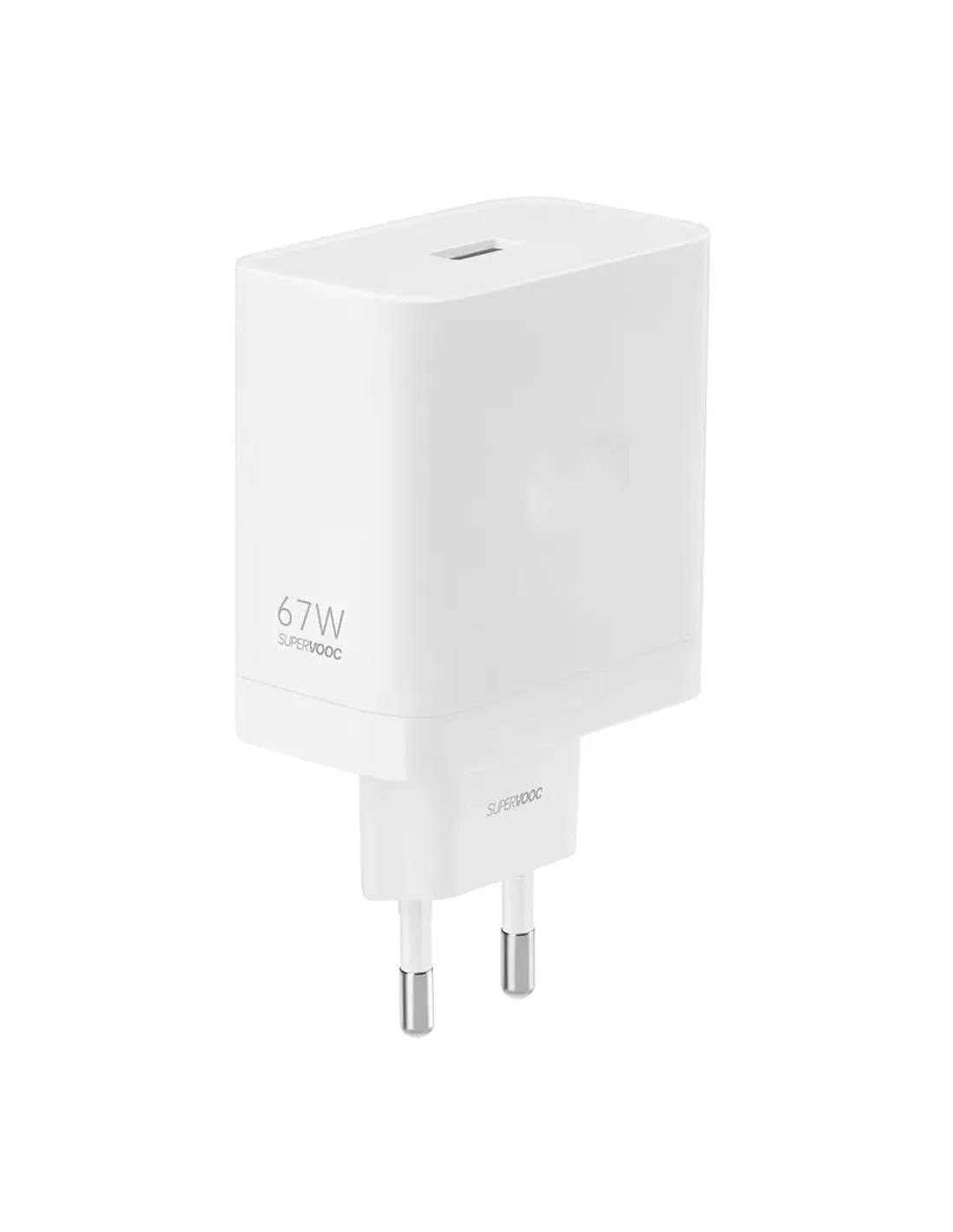 Características del OPPO Cargador SuperVOOC 67W USB-A Blanco con Cable USB-CEl cargador OPPO SuperVOOC 67W está diseñado para quienes necesitan una carga rápida, segura y eficiente en su smartphone. Compatible con la tecnología SuperVOOC de OPPO, este dispositivo ofrece un rendimiento excepcional con un diseño compacto y un cable USB-C incluido, ideal para el uso diario o para llevar de viaje.Carga ultra rápida de hasta 67WGracias a su potencia de hasta 67W, este cargador es capaz de recuperar un alto porcentaje de batería en muy pocos minutos, siempre que se utilice con dispositivos compatibles con SuperVOOC. También es retrocompatible con cargas más bajas, adaptándose a otros dispositivos que no usen esta tecnología.Salida máxima: hasta 11V / 6,1A (67W)Compatible con carga rápida VOOC y SuperVOOCIncluye cable USB-A a USB-CDiseño compacto, ligero y funcionalSu diseño en color blanco se adapta a cualquier entorno, mientras que sus dimensiones y peso permiten transportarlo con facilidad. Además, cuenta con protecciones integradas para garantizar la seguridad durante la carga.Dimensiones: 54 × 31 × 71 mmPeso: 106 gIdeal para smartphones OPPO y otros dispositivos compatiblesSeguridad y garantía extendidaEl cargador cuenta con múltiples sistemas de protección contra sobrecarga, sobrecalentamiento y cortocircuitos. Además, está respaldado por una garantía oficial de 3 años, lo que refuerza su fiabilidad como accesorio de uso intensivo.Fabricante: OPPOGarantía: 3 añosEAN13: 6932169329279Otras especificacionesFecha de lanzamiento: Febrero de 2024Tipo de producto: Cargador + cablePlataforma: SmartphoneEntrada: 100-240V ~ 50/60HzSalida estándar: 5V/2A, carga rápida hasta 11V/6,1A