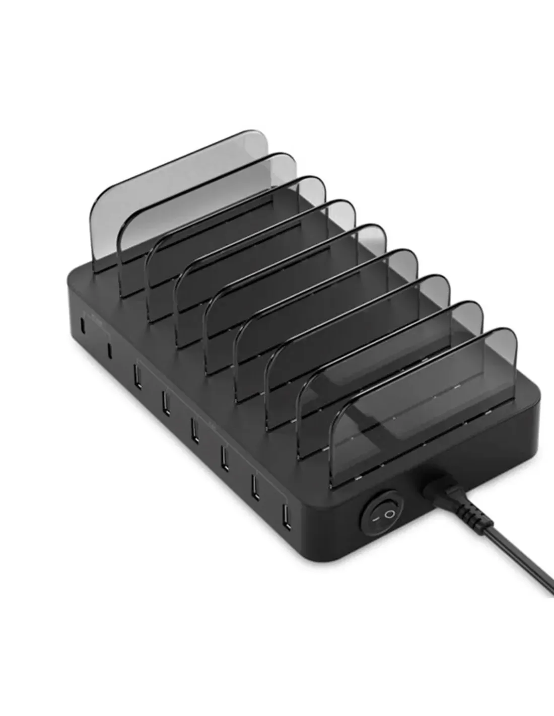 NUEVO Estación de carga para su escritorio, utiliza divisores desmontables para optimizar el cargador para sus diversos dispositivos. También proporciona una opción de carga para el Apple Watch.¡Un gran dispositivo para optimizar tu vida digital!Los divisores desmontables brindan flexibilidad y se adaptan a una variedad de dispositivosTecnología USB Power Delivery (PD) 3.0 con función de carga rápidaPráctico interruptor de encendido / apagadoIncluye soporte especial para Apple WatchCarga Nintendo Switch, iPad, iPhone, Samsung Galaxy S8 / Note8 y otros dispositivos compatibles con USB PDSalida USB-C: DC 5V / 3A, 9V / 2.22A, 12V / 1.67A (PD 20W * 2)Salida USB-A: DC 5V / 7A 35W (cada 2.4A Max)Potencia total: 75 WProtegido contra sobrecarga, cortocircuito y sobrecalentamiento.La estación de carga USB OZUL ofrece una carga rápida y eficiente, con 2 puertos USB tipo C con tecnología Power Delivery (PD) 3.0. Detecta y carga automáticamente dispositivos como Nintendo Switch, iPad,iPhone, Samsung, etc., a una velocidad de hasta 75W.Optimice su escritorio o mesa de trabajo utilizando los divisores desmontables para optimizar el cargador para sus diversos dispositivos. También proporciona una opción de carga para el Apple Watch.¡Un gran dispositivo para optimizar tu vida digital!Los divisores desmontables brindan flexibilidad y se adaptan a una variedad de dispositivosTecnología USB Power Delivery (PD) 3.0 con función de carga rápidaPráctico interruptor de encendido / apagadoIncluye soporte especial para Apple WatchCarga Nintendo Switch, iPad, iPhone, Samsung Galaxy S8 / Note8 y otros dispositivos compatibles con USB PDSalida USB-C: DC 5V / 3A, 9V / 2.22A, 12V / 1.67A (PD 20W * 2)Salida USB-A: DC 5V / 7A 35W (cada 2.4A Max)Potencia total: 75 WProtegido contra sobrecarga, cortocircuito y sobrecalentamiento.Conector: Enchufe de corriente alternaPotencia de salida (vatios): 75WPeso del producto (kg): 0,33Ancho de producto (mm): 205Profundidad del producto (mm): 130Altura del producto (mm): 79Puerto USB-A: 6Puerto USB-C PD (salida de energía): 2Color: NegroEAN: 4015867226612Número de modelo: OZUL02BContenidos del paquete: OZUL02BCable de alimentación de CA9 divisores1 soporte para Apple Watch1 cable USB-A a Micro USB1 cable USB-A a Lightning1 cable USB-C a USB-CGuía de instalación rápida en varios idiomasPackage contents OZUL02BAC power cable9 x divider1 x Apple Watch holder1 x USB-A to Micro USB cable1 x USB-A to Lightning cable1 x USB-C to USB-C cableMulti language quick installation guide