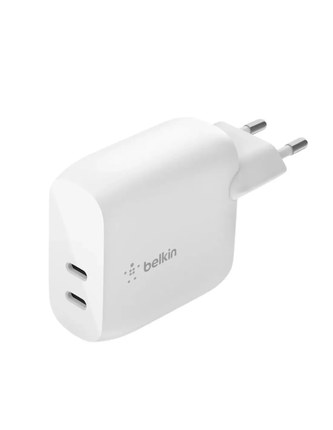 Características del Belkin Cargador 40W Duo USB-C Blanco - WCB006VFWHEl **Belkin BOOST?CHARGE? 40W Duo** es un cargador de pared compacto y eficiente, diseñado para usuarios que necesitan cargar simultáneamente dos dispositivos USB-C con total seguridad y velocidad. Ideal para quienes buscan un cargador fiable para el hogar, la oficina o los desplazamientos, este modelo garantiza una carga rápida y segura en un formato minimalista y elegante.Carga rápida y eficiente para dos dispositivosCon una salida total de **40 W repartidos entre dos puertos USB-C**, este cargador permite alimentar de forma simultánea smartphones, tablets u otros dispositivos compatibles con carga Power Delivery. Gracias a su **certificación USB-C PD 3.0**, optimiza la entrega de energía para adaptarse a las necesidades de cada dispositivo.Potencia total: 40 W (2 x USB-C)Compatible con USB-C Power Delivery 3.0Carga rápida y segura para dispositivos compatiblesDiseño compacto y garantía de confianzaSu formato reducido y ligero lo convierte en una opción ideal para llevar en el bolso, mochila o maletín. Además, Belkin respalda este producto con **3 años de garantía**, ofreciendo tranquilidad y soporte a largo plazo.Diseño compacto y portátilColor: BlancoGarantía del fabricante: 3 añosOtras especificacionesTipo: Cargador de pared USB-C doble BOOST?CHARGE?Código EAN: 745883825455