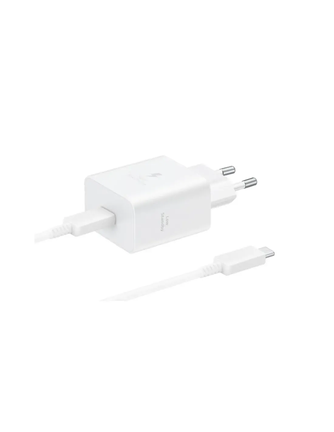 Características del Cargador Samsung EP-T4511XWEGEU USB Tipo C 45W BlancoEl cargador Samsung de 45W con USB Tipo C es la solución ideal para quienes buscan una carga rápida, eficiente y segura en cualquier momento del día. Compatible con una amplia gama de dispositivos, este adaptador ofrece una potencia optimizada para smartphones, tablets y otros equipos que admitan carga vía USB-C. Su diseño compacto en color blanco y el cable de 1,8 metros lo convierten en una opción versátil tanto para el hogar como para la oficina o los viajes.Carga ultrarrápida con hasta 45W de potenciaEste cargador está diseñado para ofrecer cargas significativamente más rápidas incluso en dispositivos exigentes. Gracias a sus tecnologías de carga avanzada, reduce el tiempo de espera y mantiene la seguridad en todo momento.Potencia máxima de salida: 45 WTecnologías compatibles: Power Delivery 3.0 y Super Fast Charging 2.0Corriente de salida: hasta 3 ADiseño compacto y uso universalGracias a su compatibilidad universal, este cargador se adapta a una gran variedad de marcas y modelos. Su formato ligero y funcional es ideal para llevarlo a cualquier parte sin ocupar demasiado espacio.Compatibilidad: dispositivos con entrada USB Tipo CDimensiones del adaptador: 43,5 x 28 x 81,8 mmPeso del adaptador: 92,5 gCable USB-C a USB-C de 1,8 m incluidoEl cargador incluye un cable de alta calidad para que no necesites adquirir accesorios por separado. Además de permitir una carga eficaz, también sirve para sincronizar datos entre dispositivos compatibles.Longitud del cable: 1,8 metrosTipo de cable: USB-C a USB-CIncluido en el paqueteFiabilidad y seguridad garantizadasCon soporte para tensiones de entrada de 100 a 240 V, el cargador está preparado para adaptarse a diferentes regiones. Además, ofrece protección frente a sobrecargas y picos de corriente.Voltaje de entrada: 100 - 240 VVoltaje de salida: de 5 V a 20 VTipo de enchufe: Tipo C (europeo)Otras especificacionesColor del producto: BlancoTipo de cargador: InteriorNúmero de dispositivos simultáneos: 1Alimentación: Corriente alternaNúmero de puertos USB Tipo C: 1