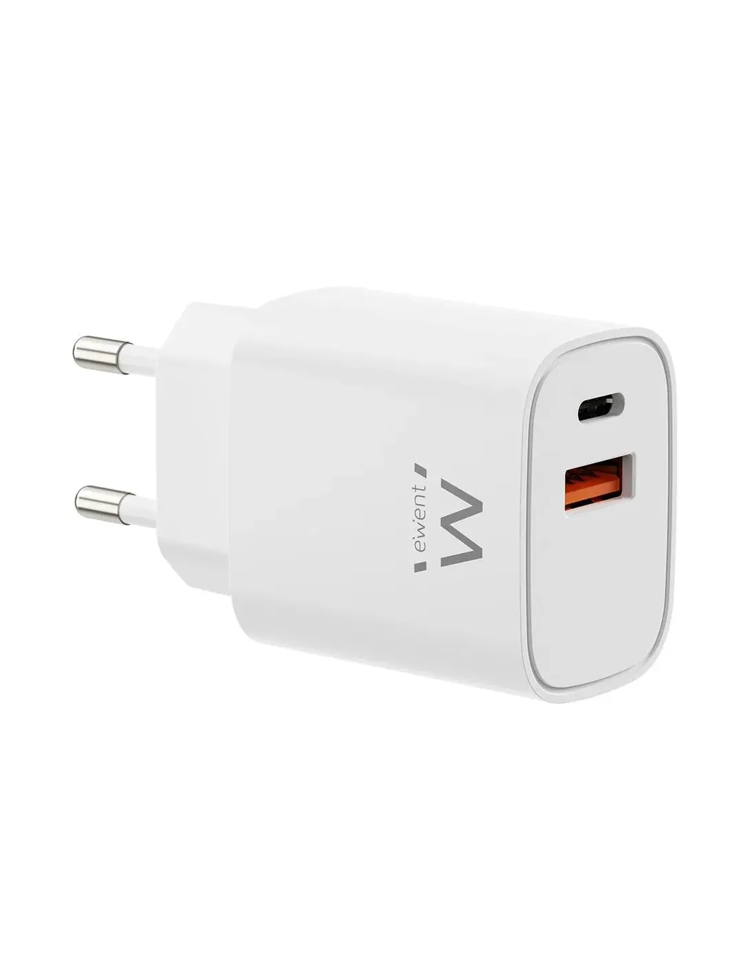 Características del Cargador Rápido GaN de 30W USB-C PD y USB-A QC EW1326El cargador rápido Ewent EW1326 de 30W es la solución ideal para quienes buscan carga eficiente, rápida y segura en un formato compacto. Diseñado para dispositivos Apple de última generación, incluidos los modelos más recientes de iPhone, así como smartphones y tabletas Android, este cargador combina tecnología GaN, Power Delivery y Quick Charge para ofrecer el mejor rendimiento en cualquier situación.Carga rápida universal con Power Delivery y Quick ChargeEquipado con USB-C Power Delivery 3.0 y USB-A Quick Charge 3.0, este cargador permite cargar una amplia variedad de dispositivos de forma rápida y eficiente. Es capaz de alcanzar hasta un 60% de carga en solo 30 minutos, optimizando el tiempo de uso diario.Potencia máxima de salida: 30W1 puerto USB-C PD 3.0 + 1 puerto USB-A QC 3.0Carga simultánea de dos dispositivosTecnología GaN Fast: más potencia en menos espacioGracias al uso de tecnología GaN (nitruro de galio), el cargador ofrece mayor eficiencia energética y un diseño más compacto y ligero. Esto se traduce en menor generación de calor y mejor rendimiento en un tamaño reducido.Diseño compacto y ligero (solo 60 g)Mayor eficiencia frente a cargadores tradicionalesDimensiones: 28,8 x 41,2 x 79,4 mmTecnología PPS: carga inteligente y eficienteLa tecnología PPS (Programmable Power Supply) ajusta dinámicamente el voltaje y la corriente en tiempo real, proporcionando la potencia exacta que necesita cada dispositivo. Esto mejora la eficiencia, reduce el calor y ayuda a prolongar la vida útil de la batería.Ajuste dinámico de voltaje y corrienteMenor pérdida de energía durante la cargaMayor protección para la bateríaCompatibilidad total con dispositivos modernosEste cargador está diseñado para funcionar con una amplia gama de dispositivos, incluyendo smartphones, tabletas, auriculares, baterías externas e incluso consolas portátiles. Es totalmente compatible con los principales estándares de carga del mercado.Compatible con iPhone y dispositivos AndroidSoporte para PD3.0, QC2.0/3.0/4+, AFC, FCP, SCPCompatible con Apple 2.4A y BC1.2Seguridad avanzada y protección totalEl EW1326 incorpora múltiples sistemas de seguridad que garantizan una carga segura en todo momento. Además, detiene automáticamente la carga cuando el dispositivo alcanza el 100%.Protección contra sobrecorriente, sobretensión y sobrecargaControl de temperatura integradoParada automática al completar la cargaOtras especificaciones técnicasEntrada: 110 - 240 V AC 0,6A MaxUSB-C salida: hasta 30W (5V/9V/12V/15V/20V)PPS: 3-11V?3A / 3-16V?2AUSB-A salida: hasta 18W (QC 3.0)Salida combinada USB-A + USB-C: 15W máx.Conector: CEE 7/16 (Euro)Color: BlancoEAN: 8052101435528