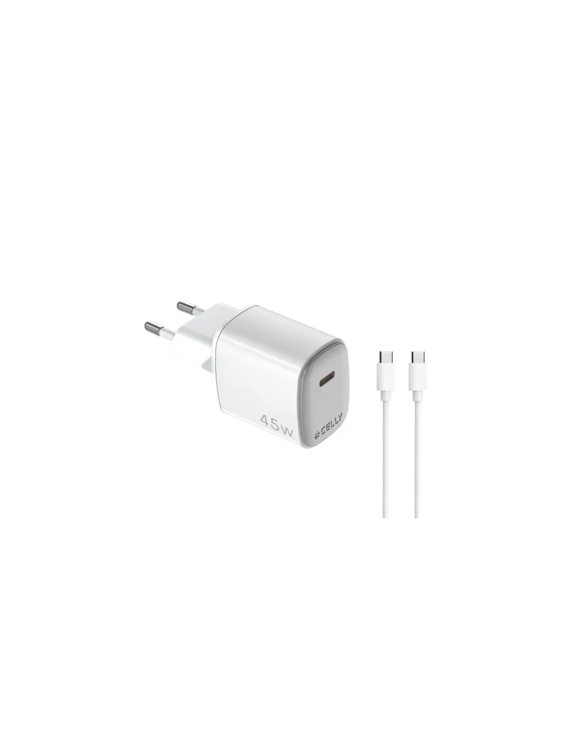 Celly UPTC1USBC45WCTC. Tipo de cargador: Interior, Alimentación: Corriente alterna, USB, Compatibilidad del cargador: Smartphone, Tableta. Voltaje de entrada: 100-240 V. Número de puertos USB Tipo C: 1, Carga rápida. Longitud de cable: 2 m, Color del producto: Blanco