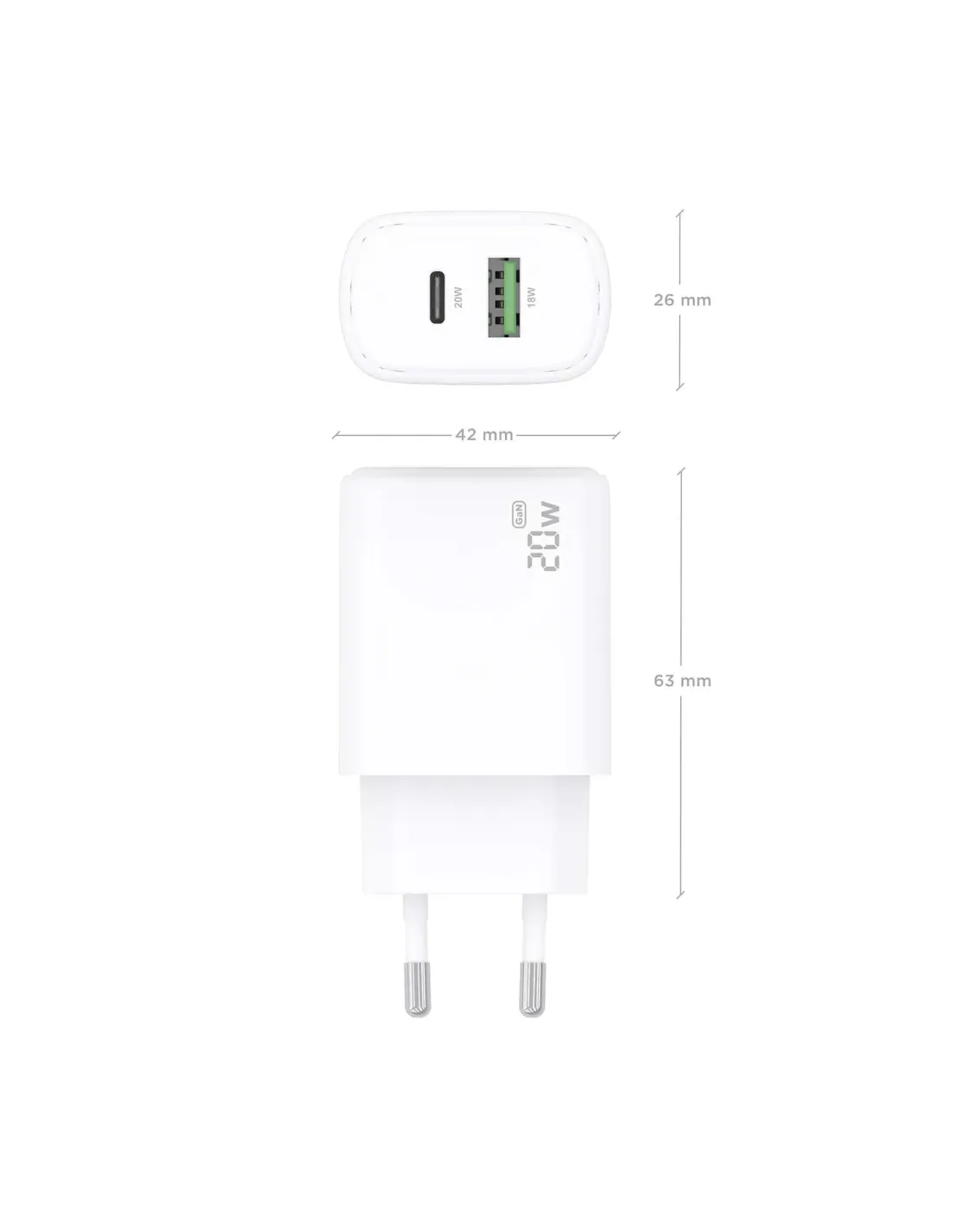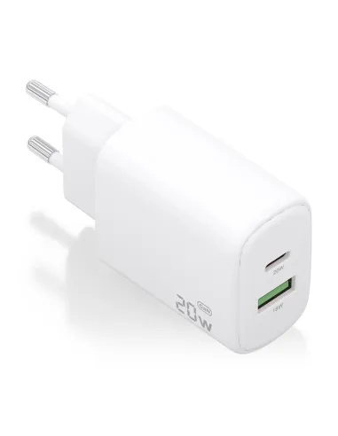 AISENS Cargador GaN 20W, 1xUSB-C PD3.0, 1xUSB-A QC3.0, Blanco