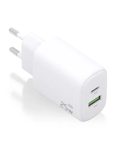 AISENS Cargador GaN 25W, 1xUSB-C PD3.0, 1xUSB-A QC3.0, Blanco