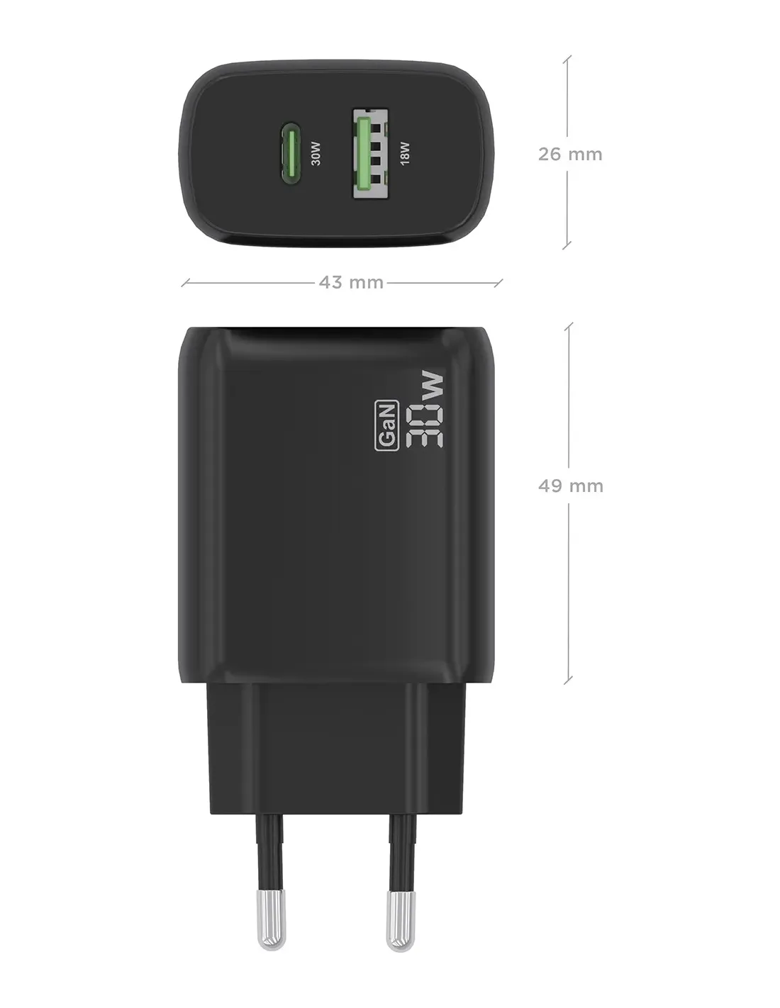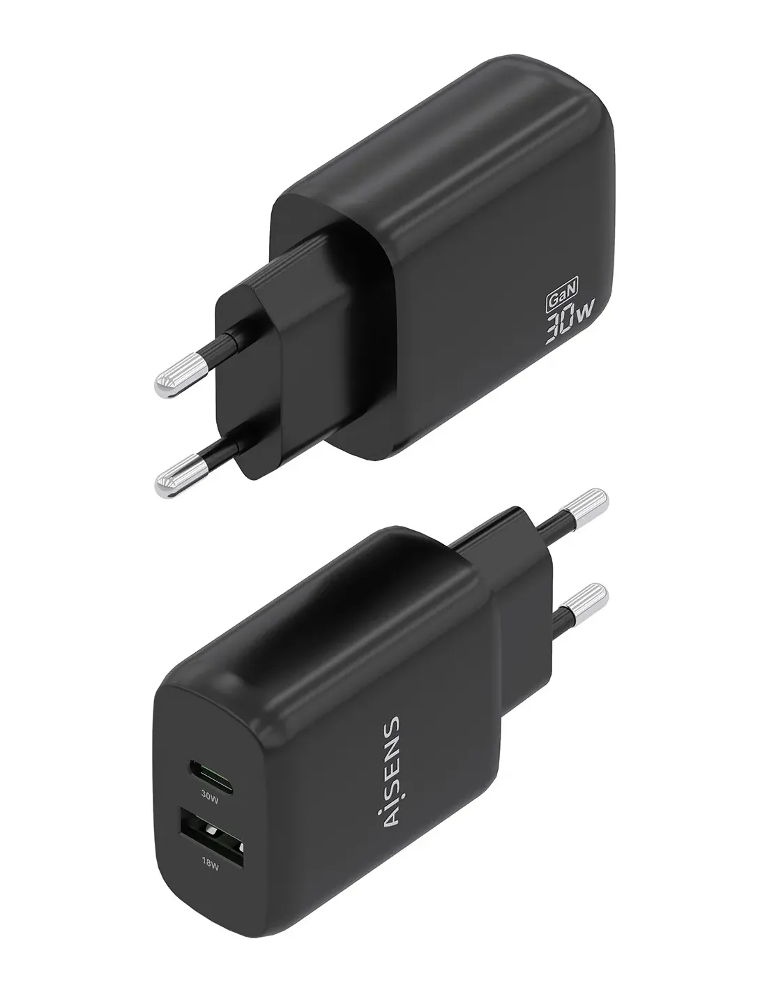 - Cargador GaN USB-C 30W para cargar portátiles, móviles, cámaras y tablets etc. Diseño muy elegante, moderno y práctico.
