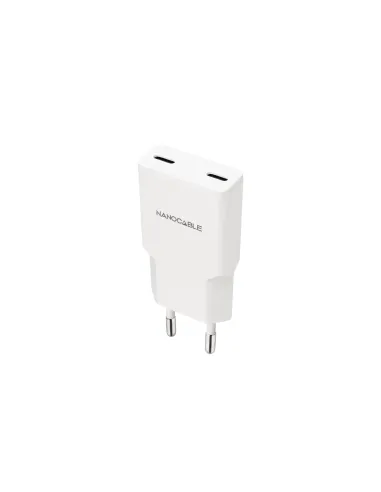 Nanocable Cargador 2xUSB-C/PD 25W, Blanco. Tipo de cargador: Interior, Alimentación: Corriente alterna, Compatibilidad del cargador: Smartphone. Voltaje de entrada: 100 - 240 V, Voltaje de salida máximo: 12 V, Corriente de salida de adaptador AC: 3 A. Número de puertos USB Tipo C: 2, Carga rápida. Color del producto: Blanco
