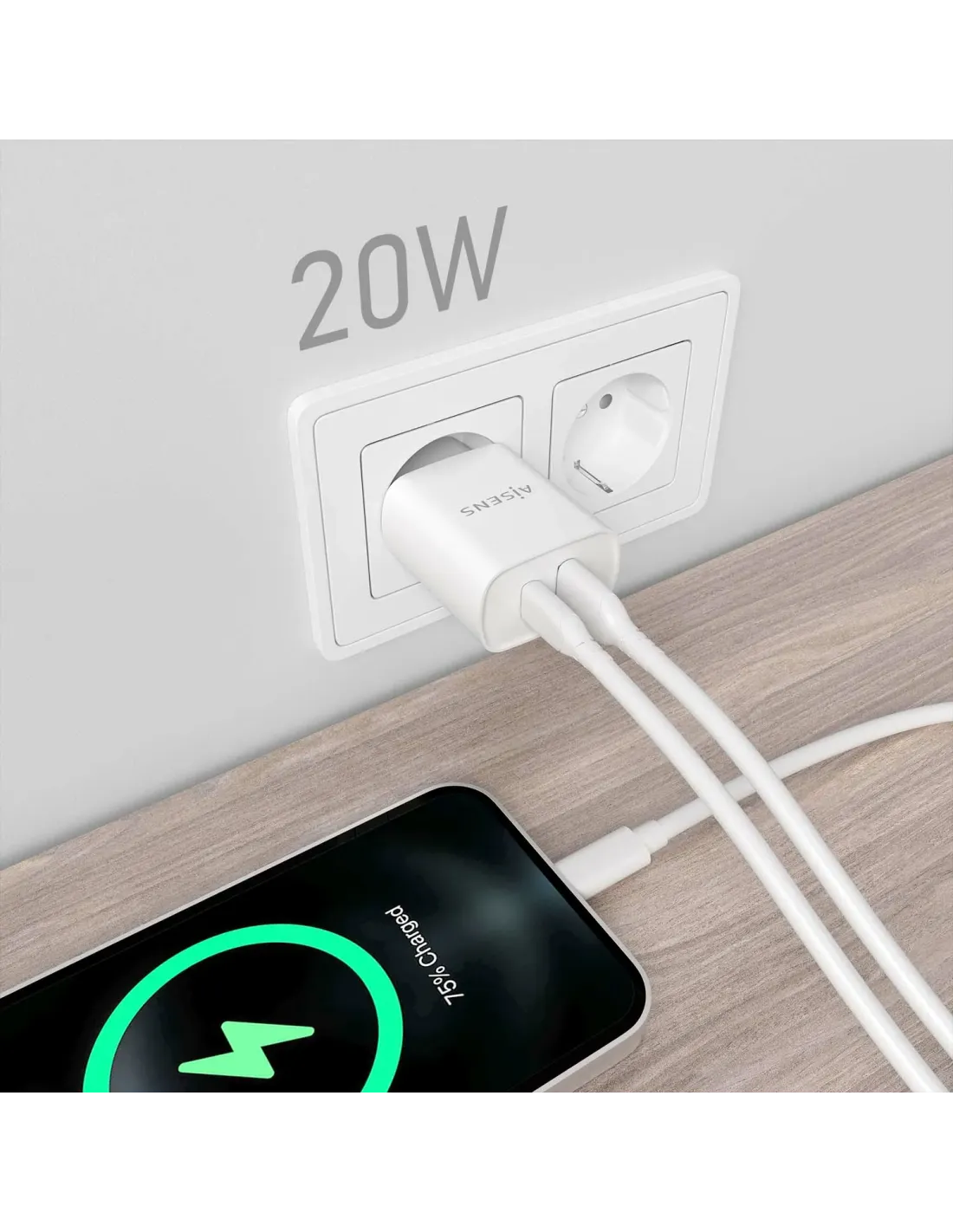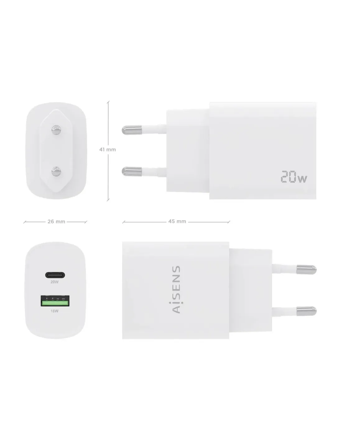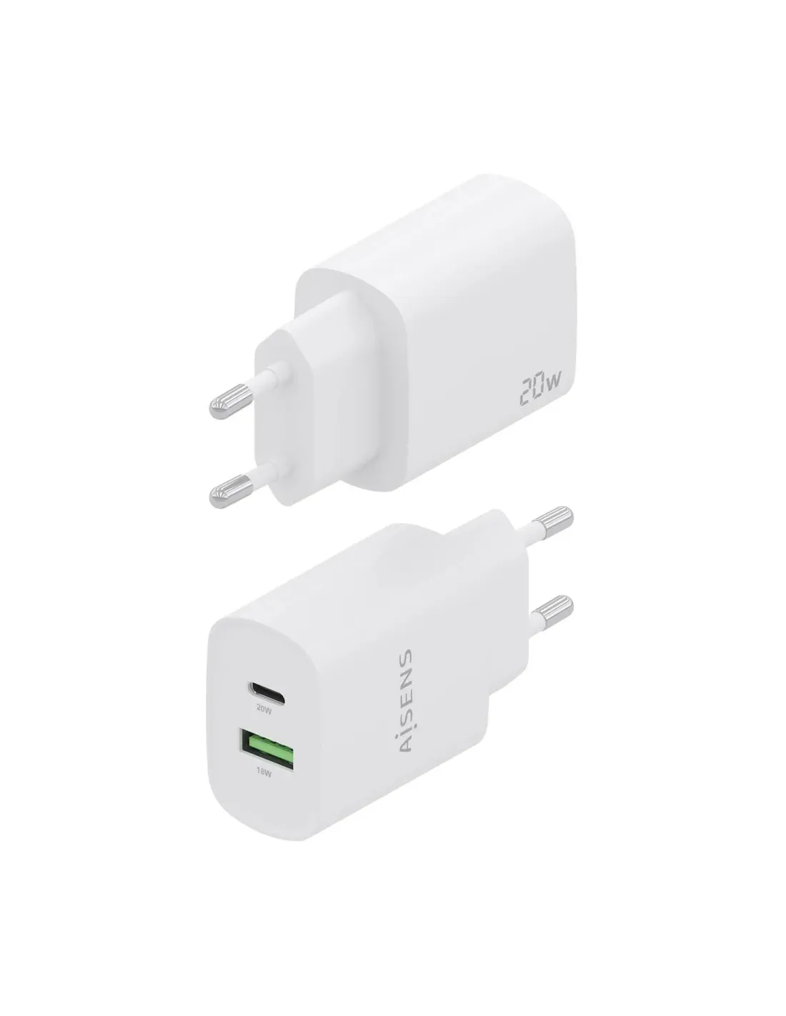 Cargador de Pared Aisens A110-0754/ 1xUSB Tipo-C/ 1xUSB/ 20W