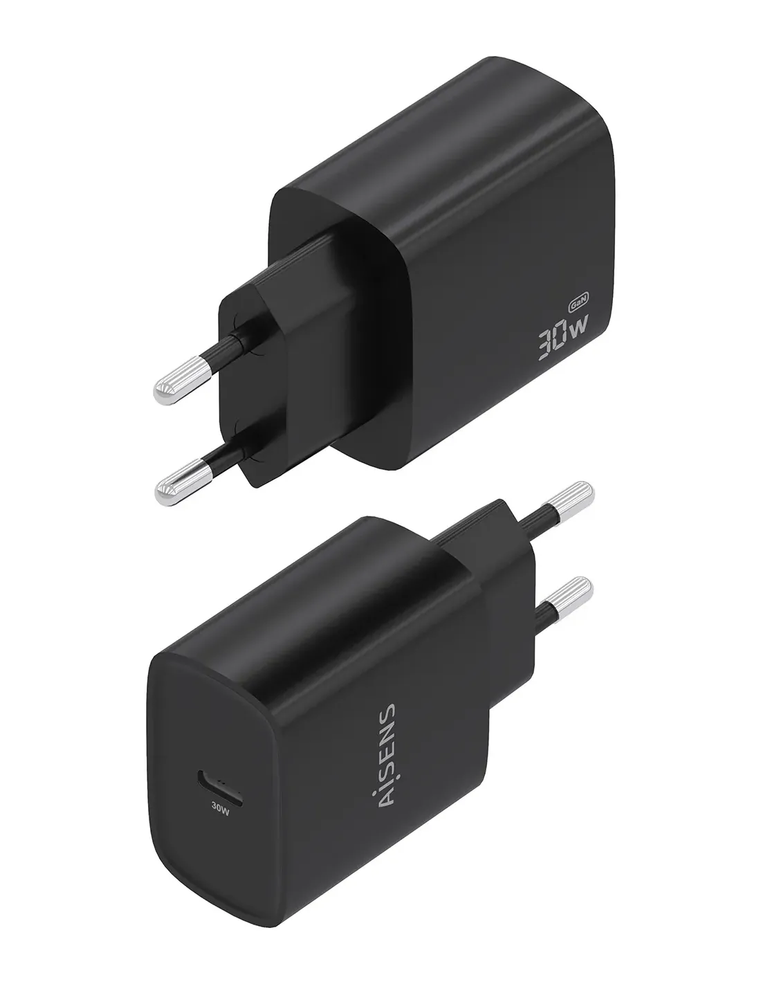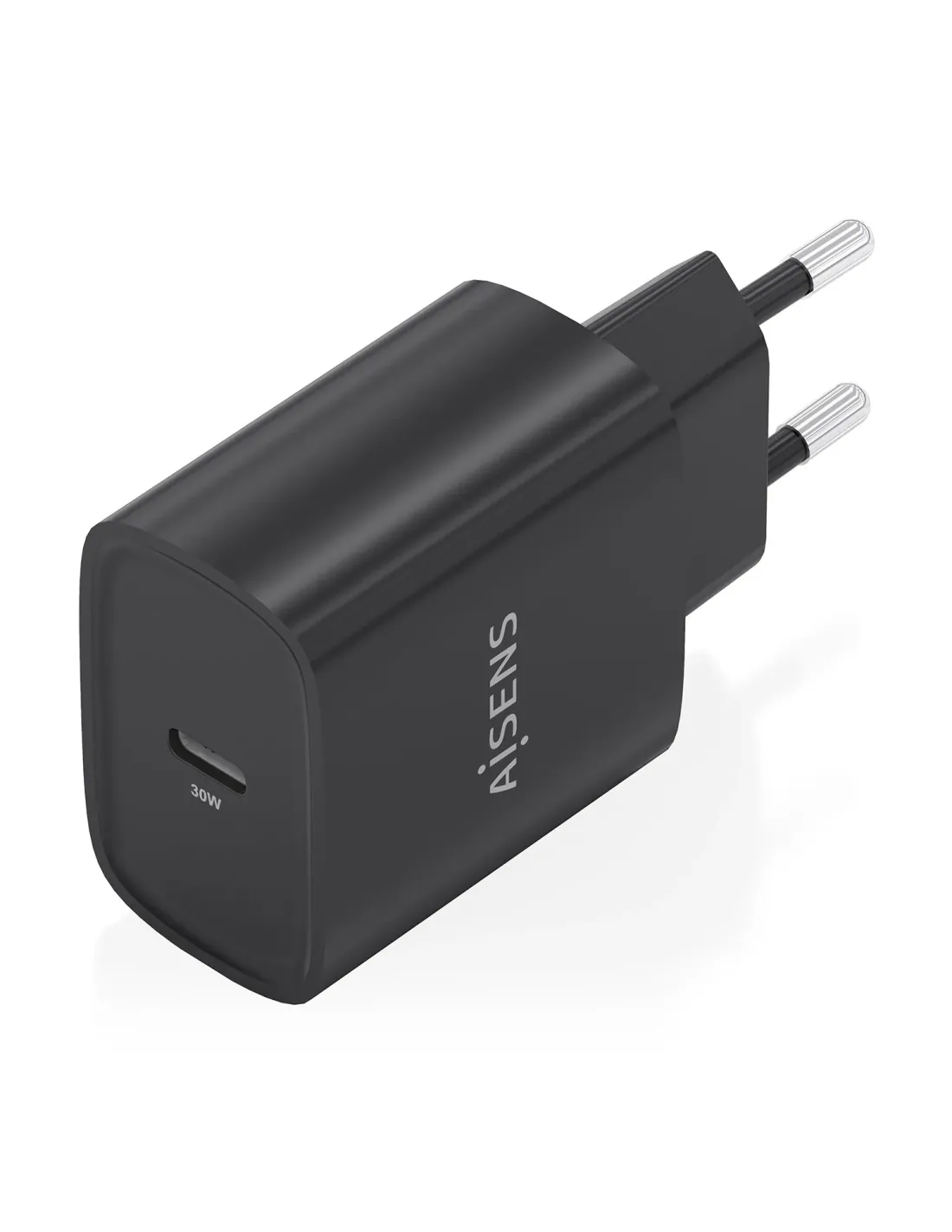 Cargador de Pared GaN Aisens A110-0951/ 1xUSB Tipo-C/ 30W/ Negro