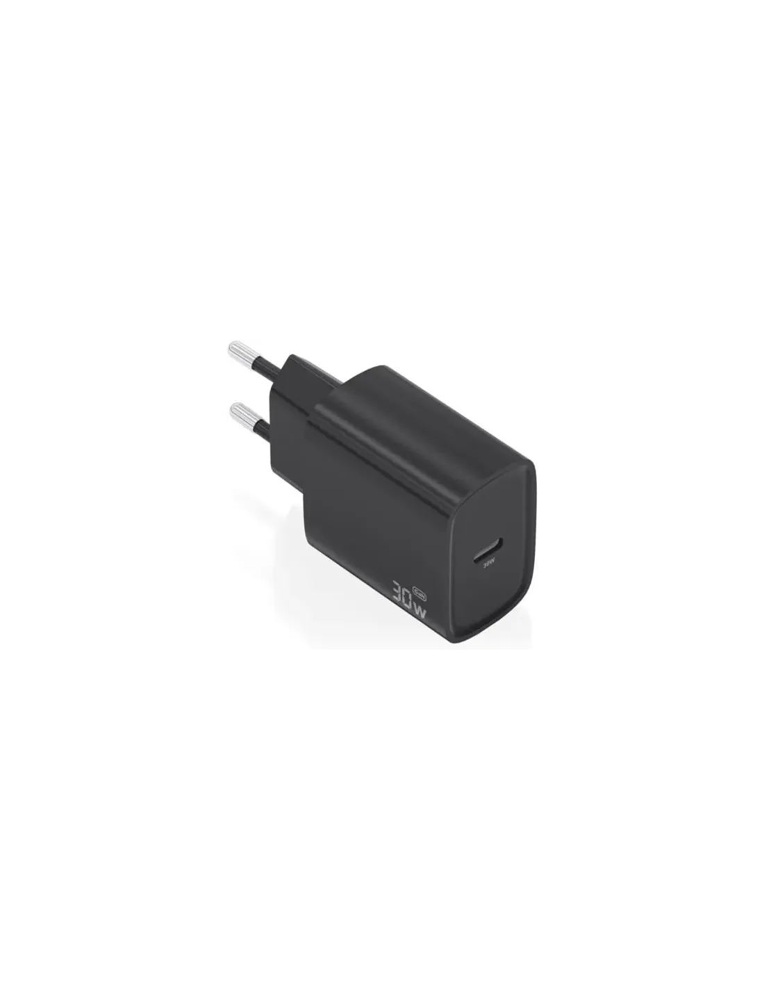 Cargador GaN USB-C 30W para cargar portátiles, móviles, cámaras y tablets etc. Diseño muy elegante, moderno y práctico.Este cargardor cuenta con la tecnología GaN que ofrece una serie de ventajas, incluyendo una mayor eficiencia energética, menor generación de calor, mayor capacidad de corriente y menor tamaño y peso en comparación con los cargadores tradicionales de silicio. Estas ventajas hacen que los cargadores GaN sean una opción cada vez más popular para usuarios que buscan una carga más rápida, eficiente y sostenible.Tecnología AI (chip inteligente) incorporado que detecta el tipo de protocolo del dispositivo conectado para maximizar tanto la compatibilidad como la velocidad de carga.Cargue su dispositivo USB-C de forma fácil y sencilla.Múltiples protecciones contra sobrecarga, cortocircuito, lo que garantiza la máxima seguridad para su dispositivo.
