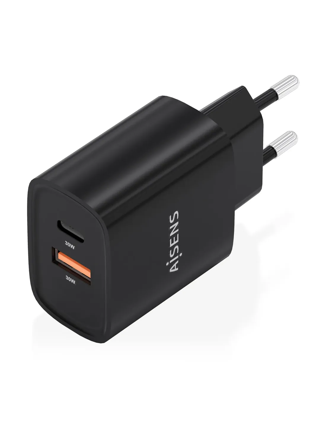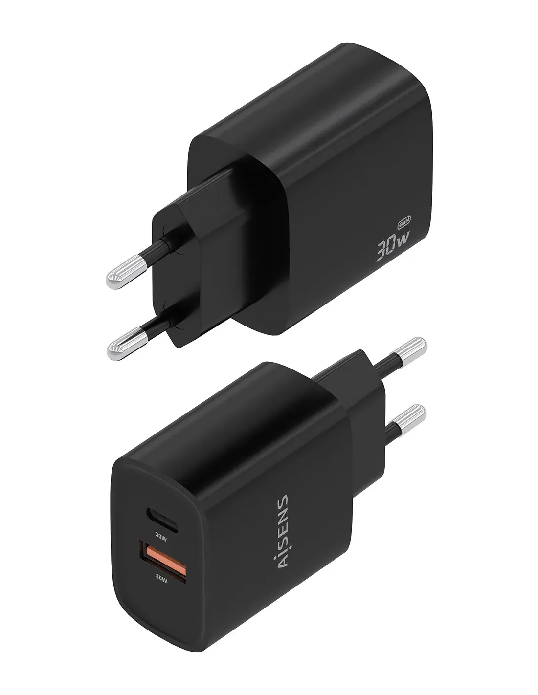 Cargador de Pared GaN Aisens A110-0953/ 1xUSB Tipo-C/ 1xUSB/ 30W/ Negro