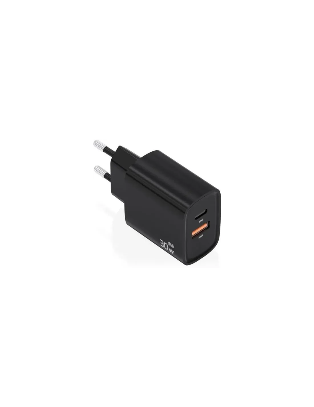 Cargador GaN 30W, 1xUSB-C PD3.0 QC4.0, 1xUSB-A QC3.0, Negro