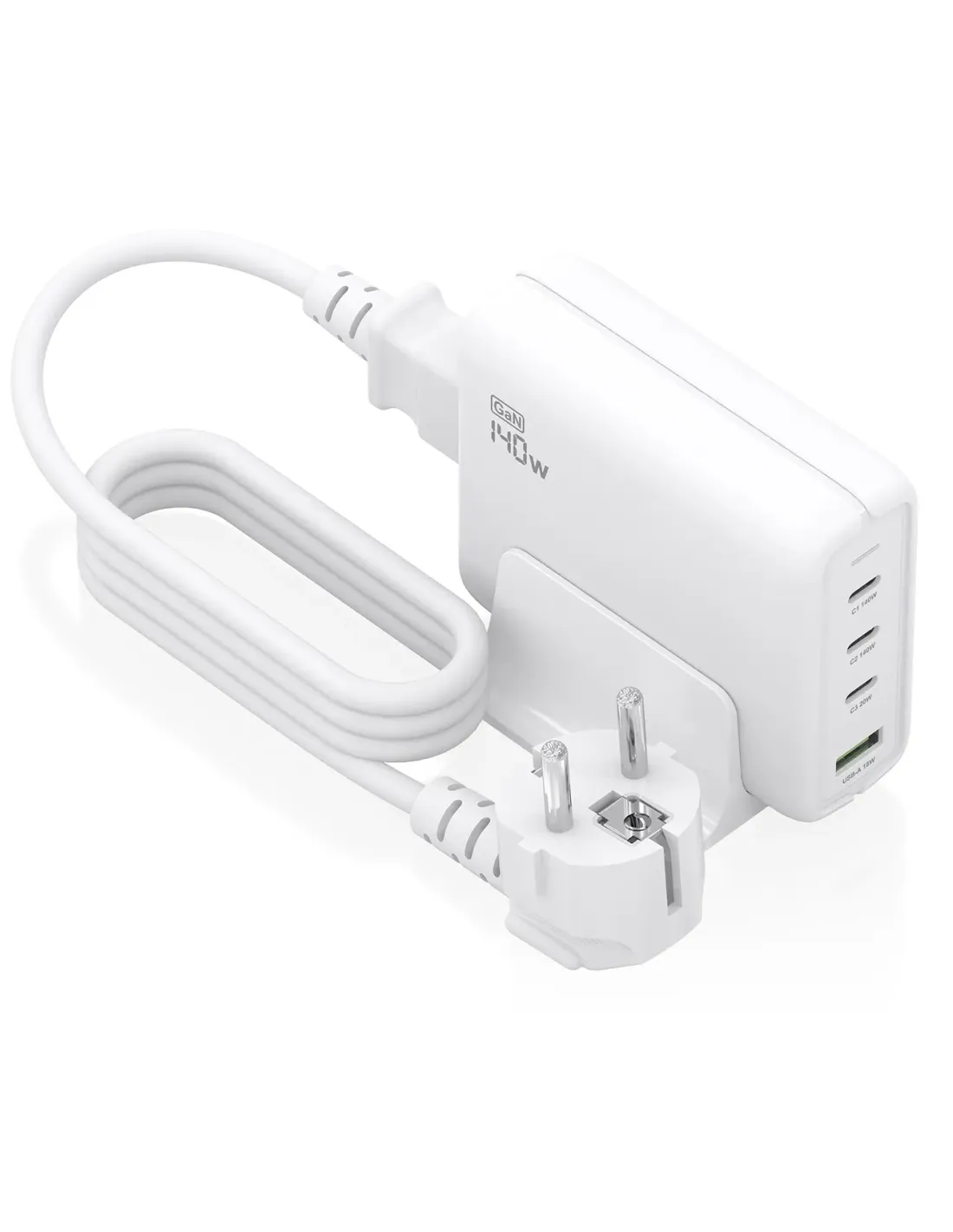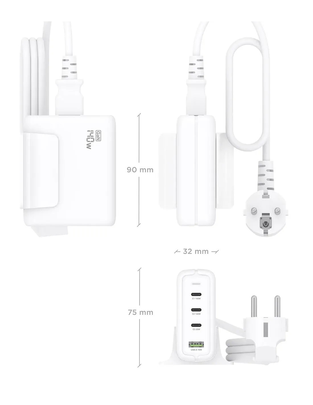 Cargador Sobremesa GaN 140W, 3x USB-C PD3.1 QC4.0 QC5.0, 1x USB-A QC3.0, Blanco