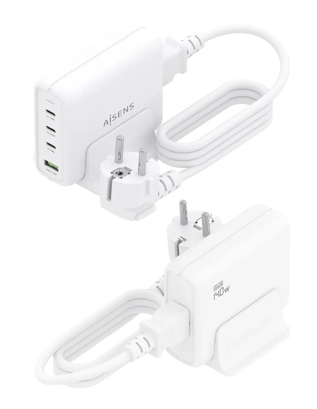 Cargador Sobremesa GaN Aisens ASCH-140W4P055-W/ 3xUSB Tipo-C/ 1xUSB/ 140W
