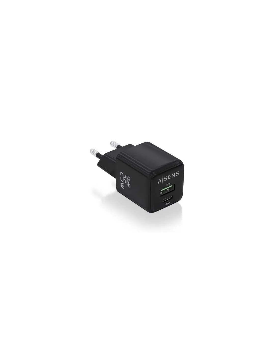 Cargador de Pared GaN Aisens ASCH-25W2P015-BK/ 1xUSB Tipo-C/ 1xUSB/ 25W