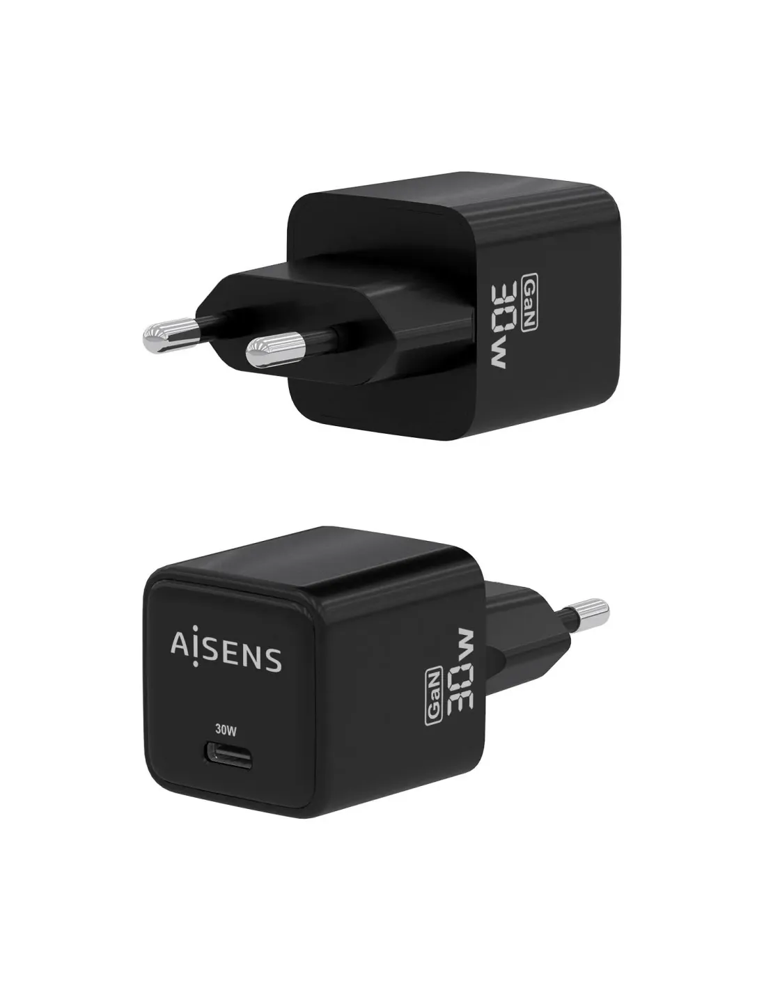Cargador de Pared GaN Aisens ASCH-30W1P036-BK/ 1xUSB Tipo-C/ 30W