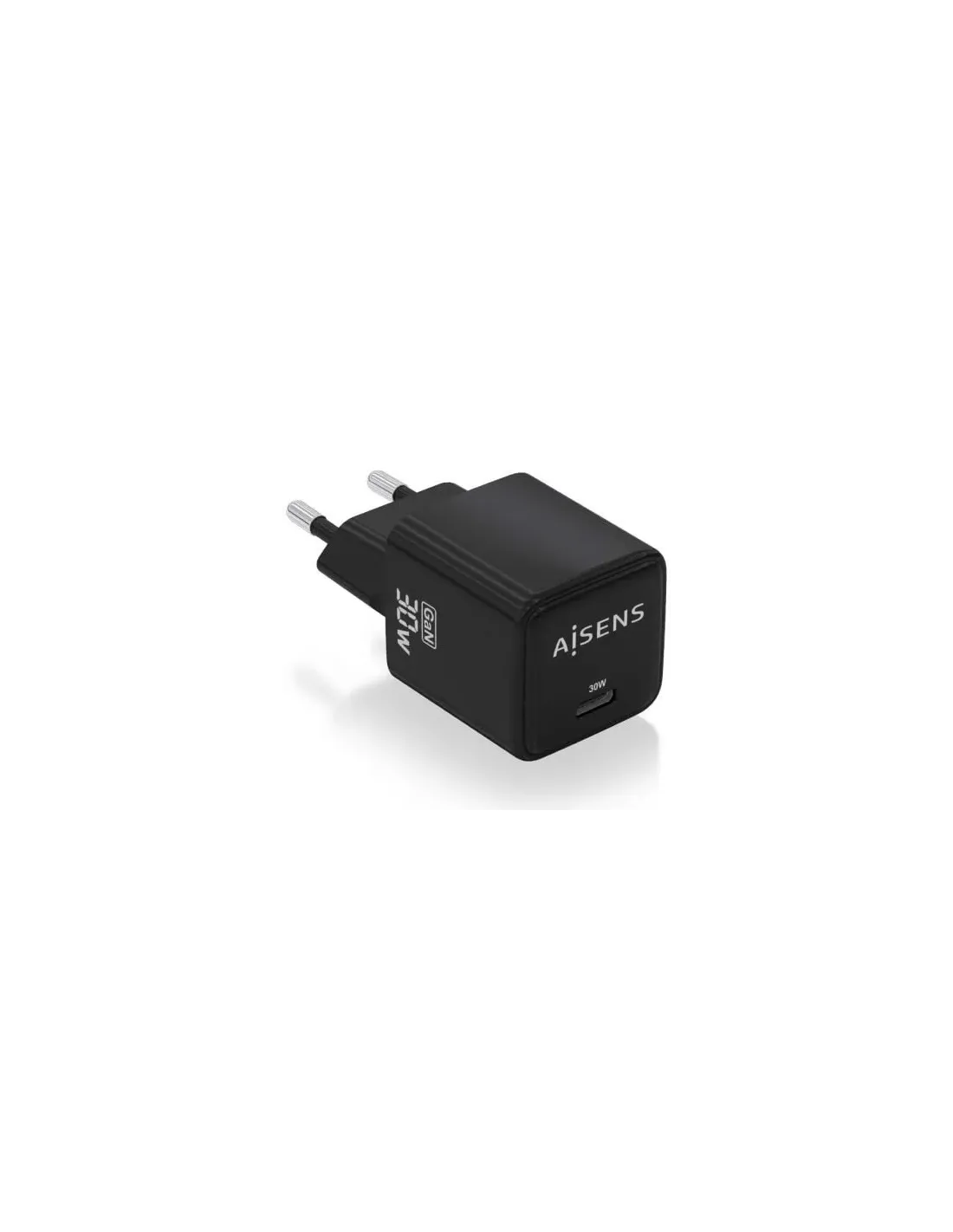 Cargador de Pared GaN Aisens ASCH-30W1P036-BK/ 1xUSB Tipo-C/ 30W