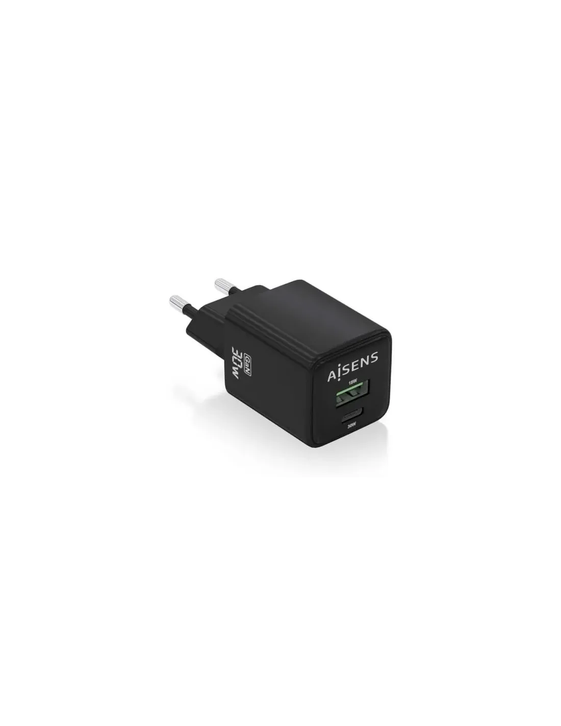 Cargador de Pared GaN Aisens ASCH-30W2P038-BK/ 1xUSB Tipo-C/ 1xUSB/ 30W