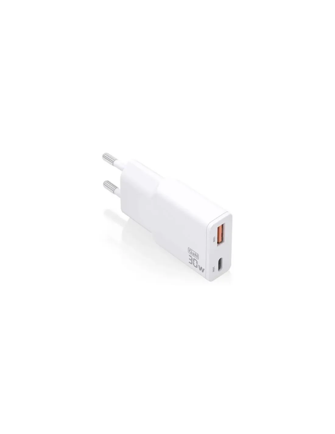 Cargador GaN Ultra Delgado 30W, 1xUSB-C PD3.0 QC4.0, 1xUSB-A QC3.0, Blanco