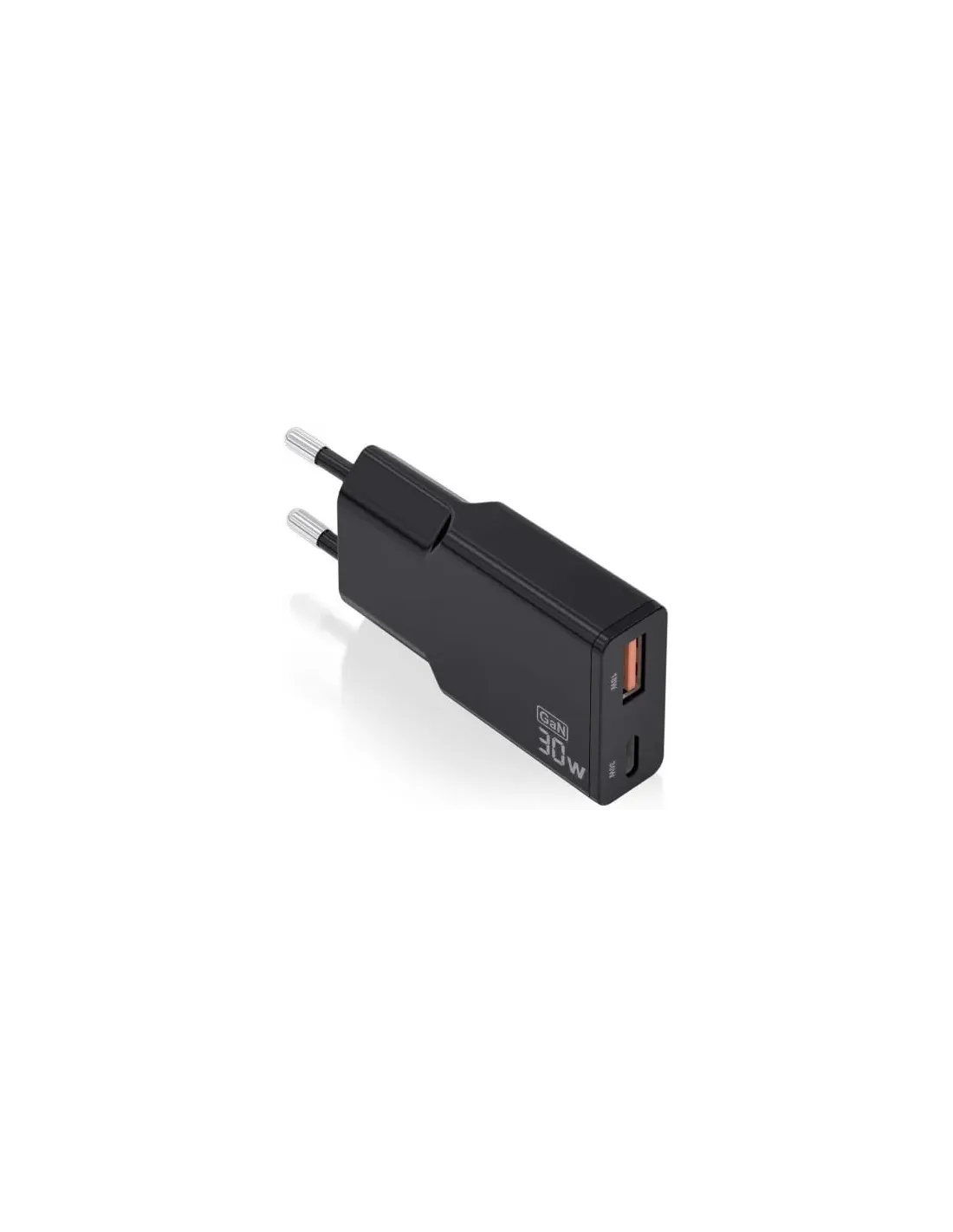 Cargador de Pared GaN Aisens ASCH-30W2P047-BK/ 1xUSB Tipo-C/ 1xUSB/ 30W/ Negro