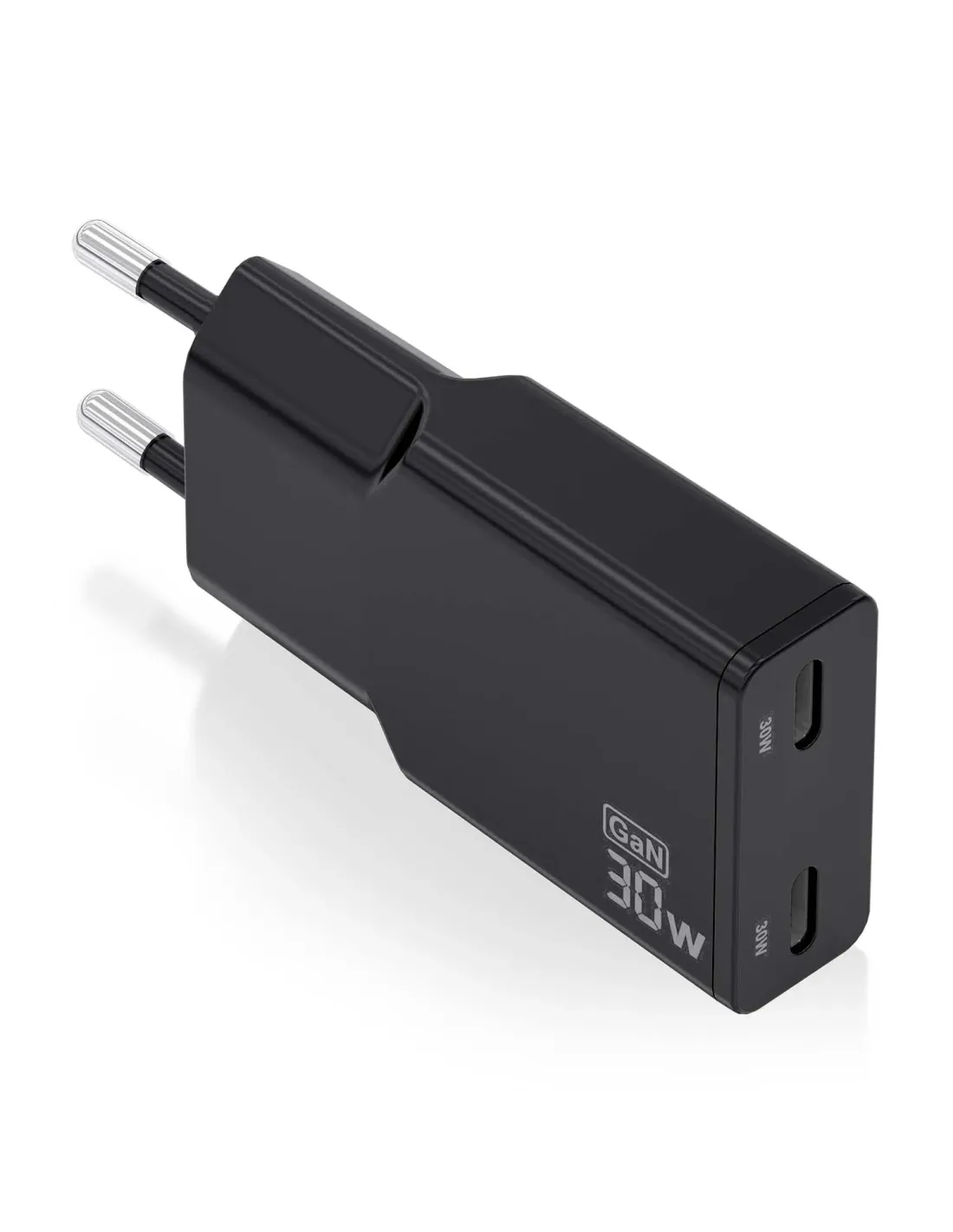 Cargador GaN Ultra Delgado 30W, 2xUSB-C PD3.0 QC4.0, Negro