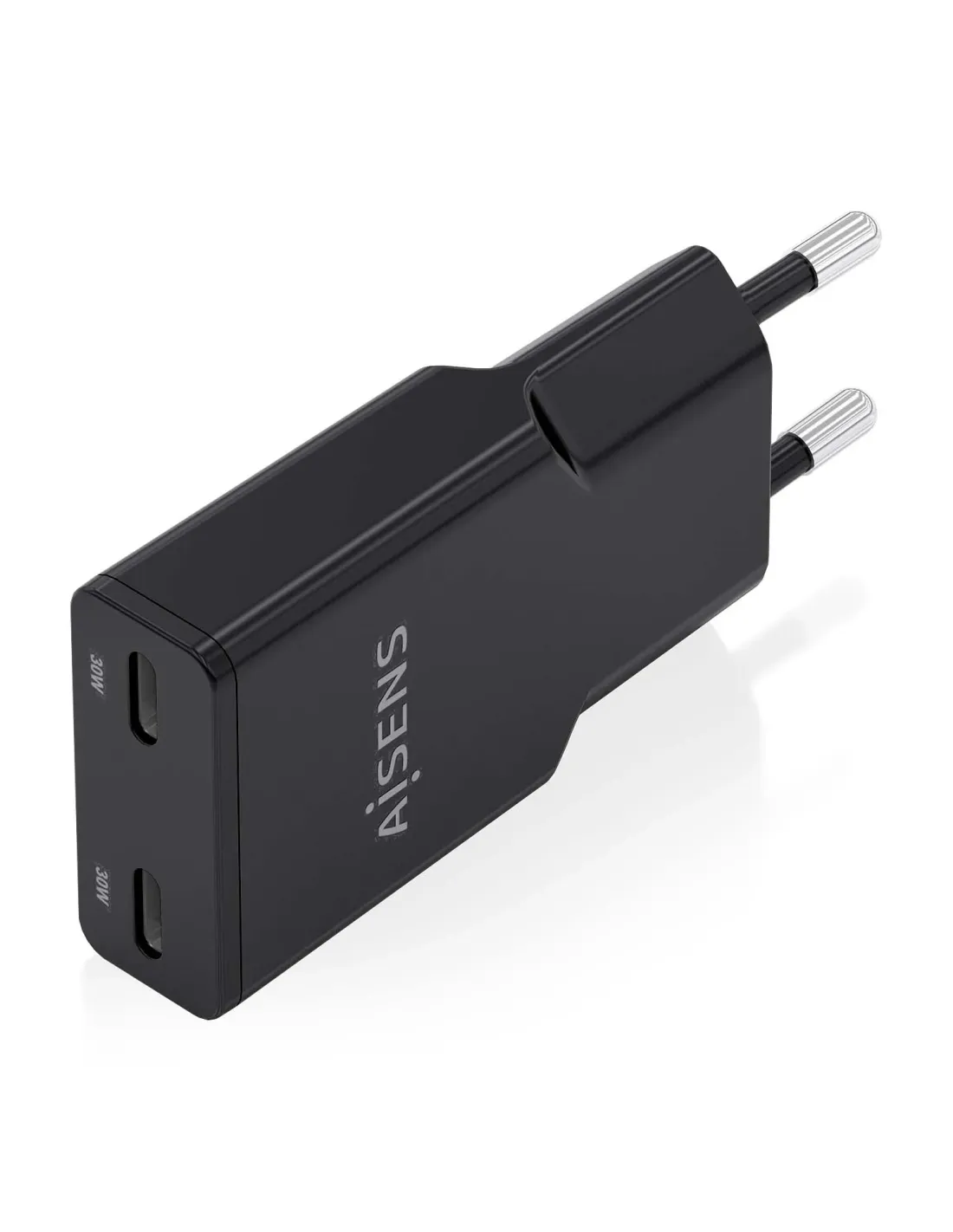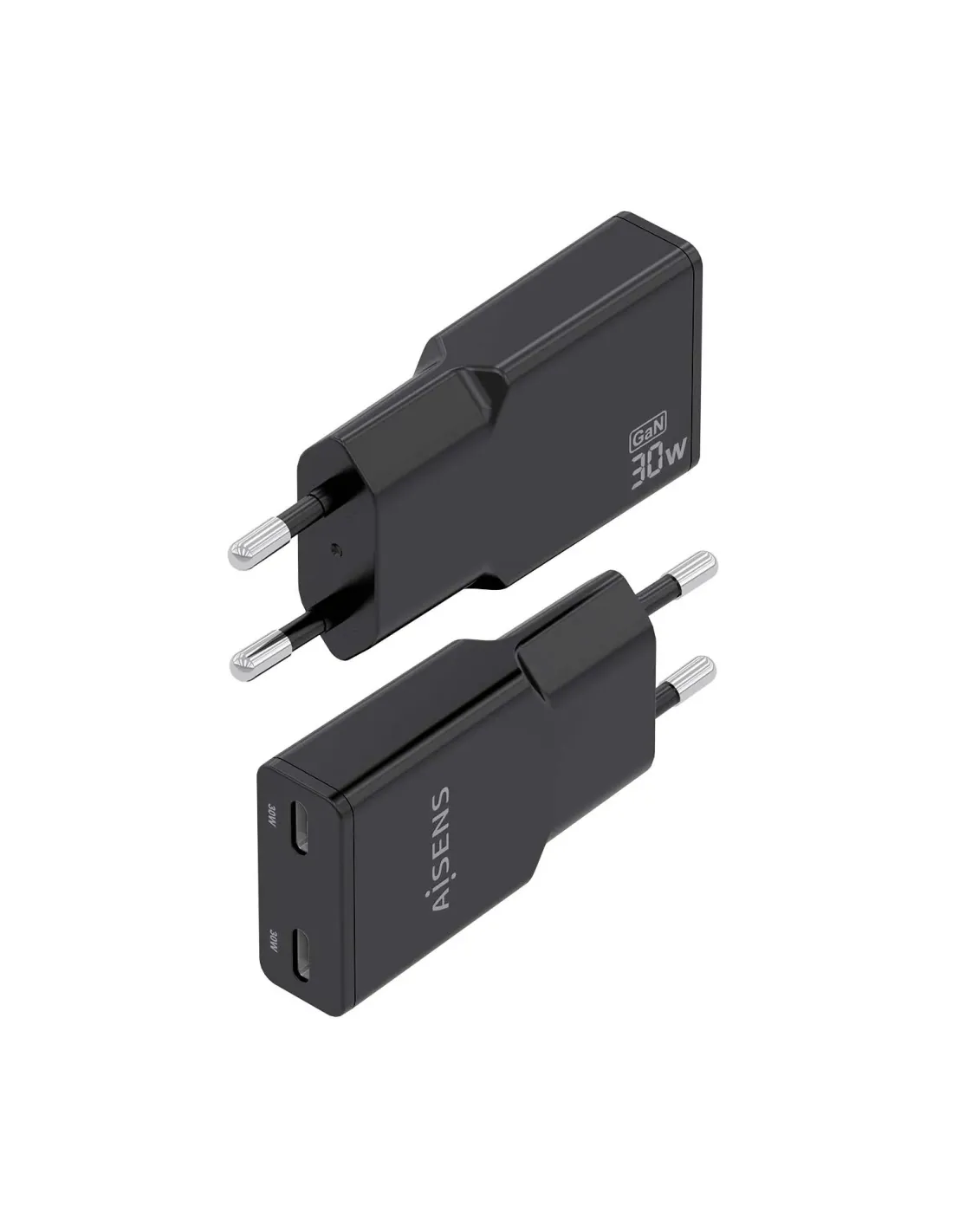 Cargador de Pared GaN Aisens ASCH-30W2P049-BK/ 2xUSB Tipo-C/ 30W/ Negro