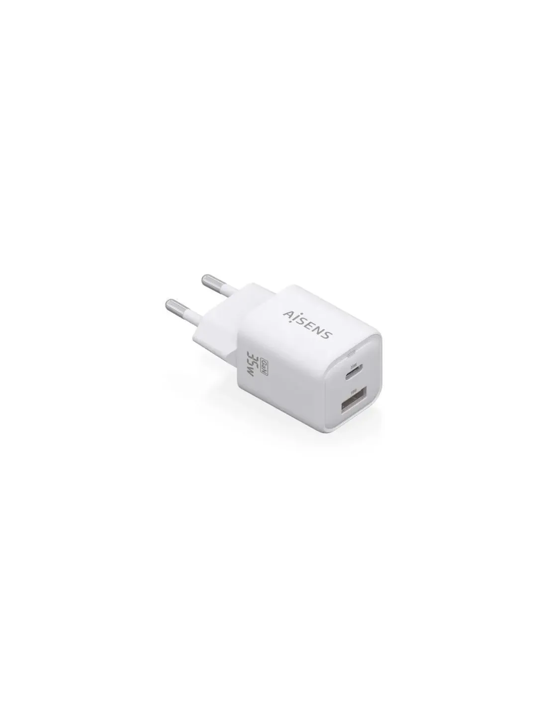AISENS® ? Cargador GaN USB-C 35W para cargar portátiles, móviles, cámaras y tablets etc.Este cargador cuenta con la tecnología GaN que ofrece una serie de ventajas, incluyendo una mayor eficiencia energética, menor generación de calor, mayor capacidad de corriente y menor tamaño y peso en comparación con los cargadores tradicionales de silicio. Estas ventajas hacen que los cargadores GaN sean una opción cada vez más popular para usuarios que buscan una carga más rápida, eficiente y sostenible.