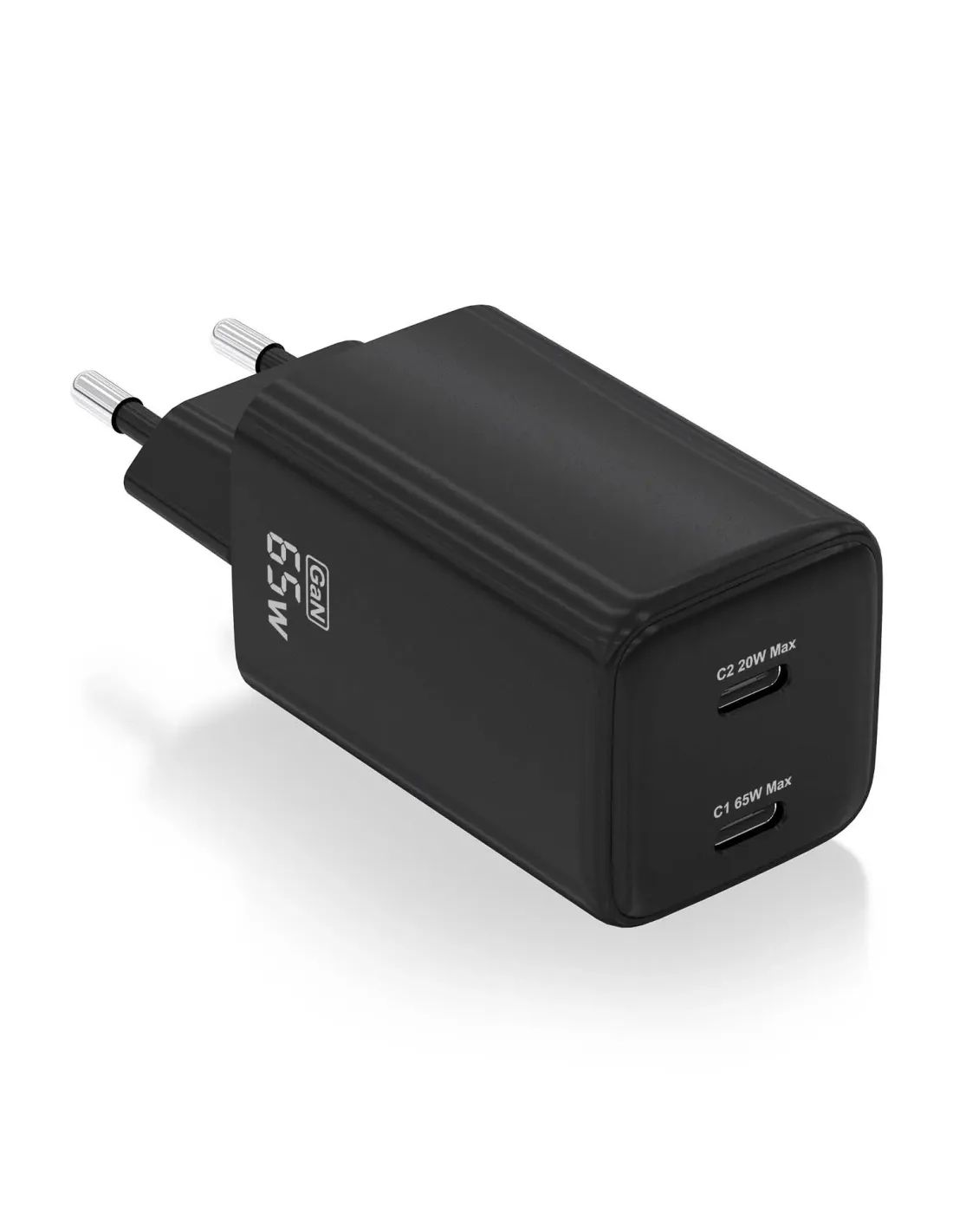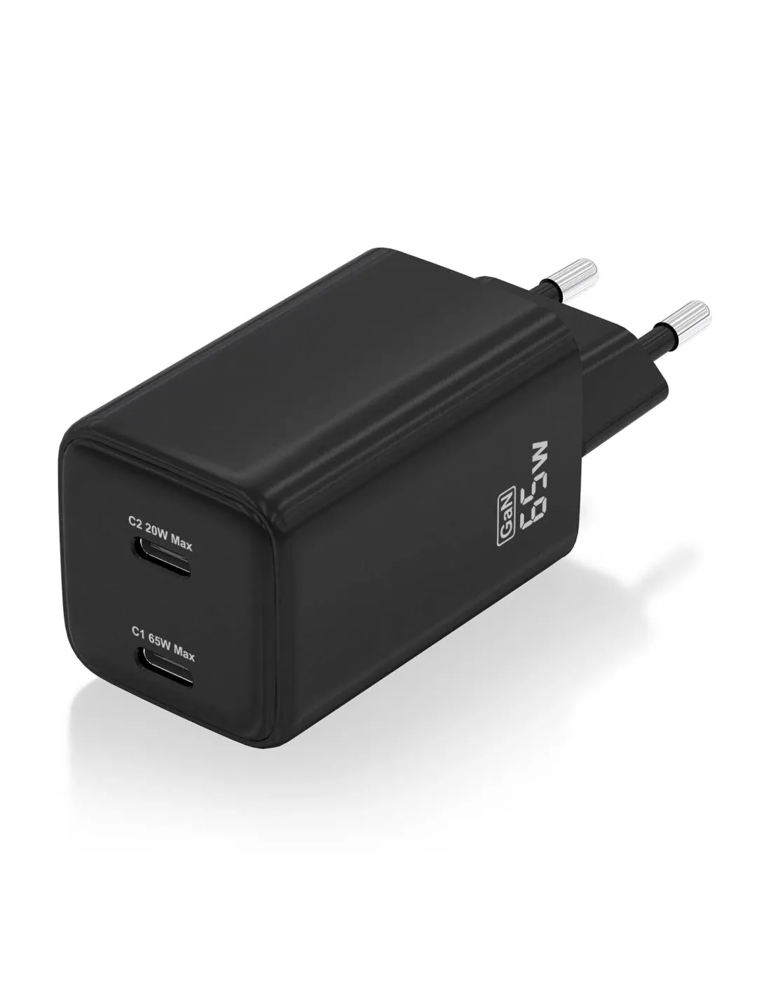 Cargador Gan 65W, 2xUSB-C PD3.0 QD4.0, Negro