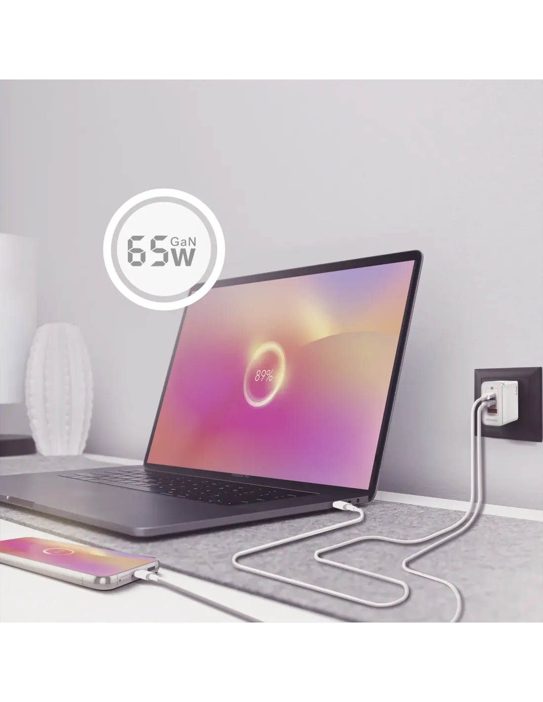Cargador Gan 65W, 2xUSB-C PD3.0 QC4.0, 1xUSB-A QC3.0, Blanco